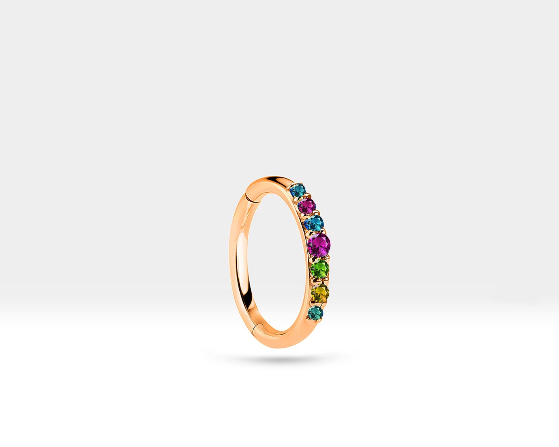 Dizi Renkli Safir Halka Piercing, 12 MM , 1.2 MM, 14K Sarı-Beyaz-Kırmızı Altın | LC00044MS