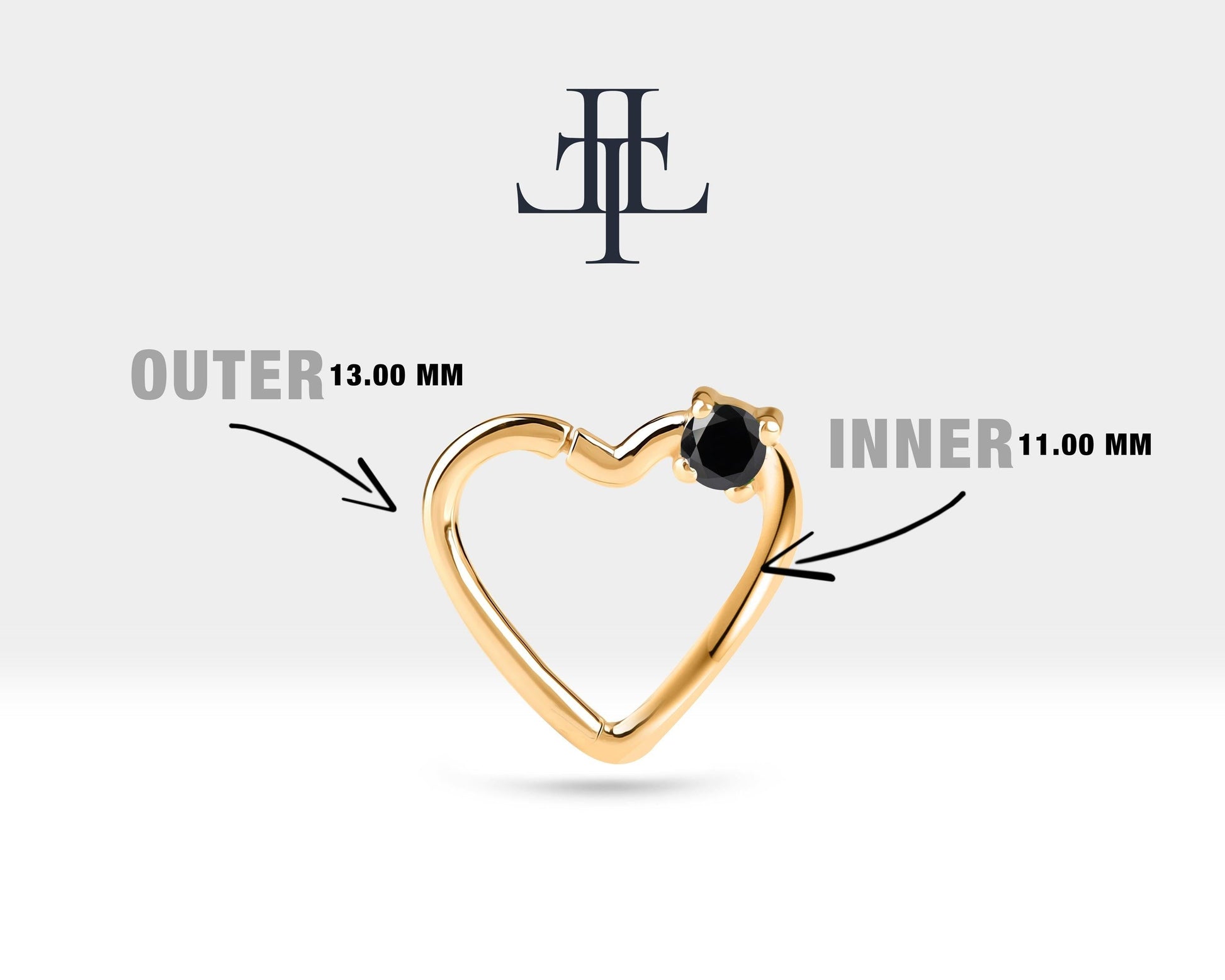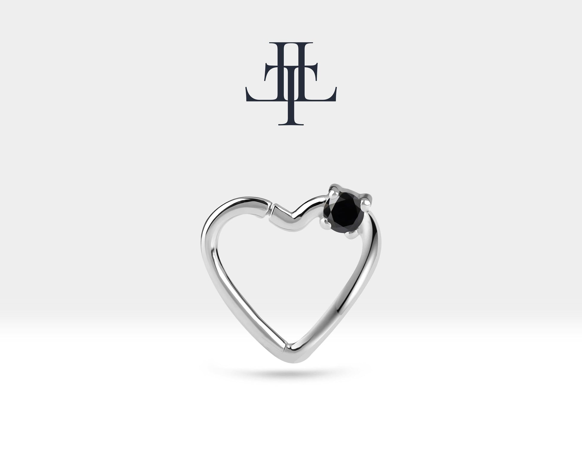Tek Taş Kalp Siyah Pırlanta Halka Piercing, 13 MM , 1.2 MM, 14K Sarı-Beyaz-Kırmızı Altın | LC00010B