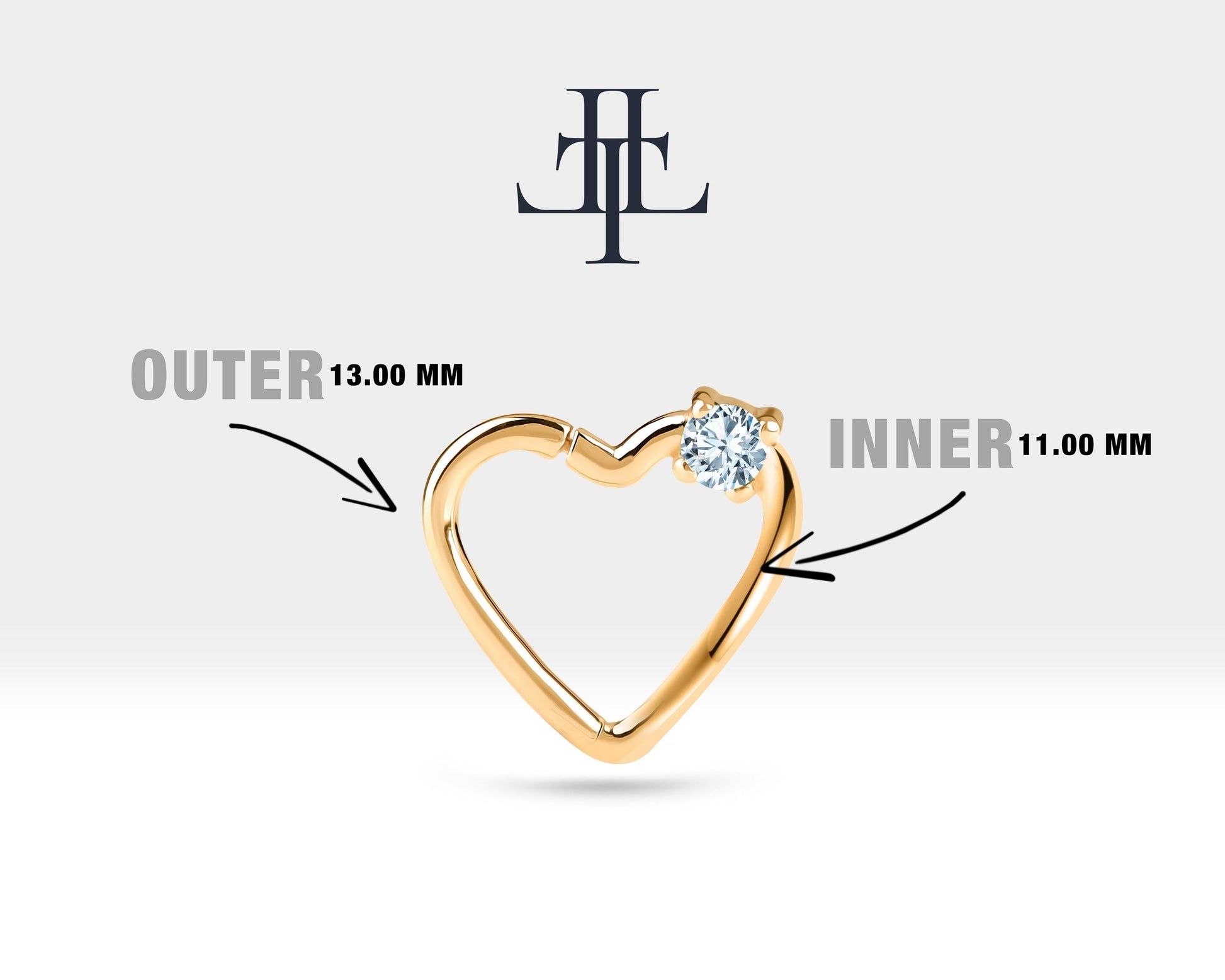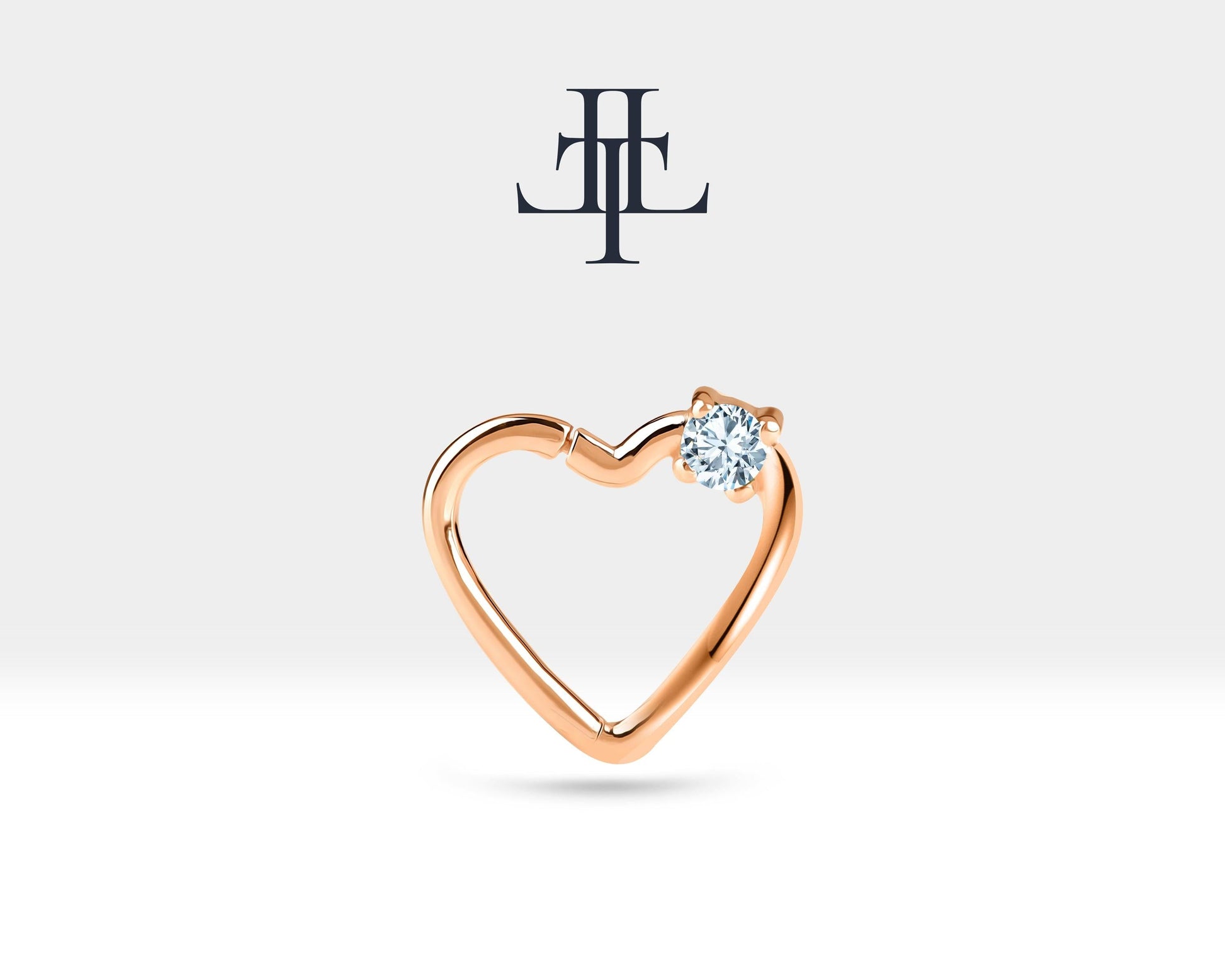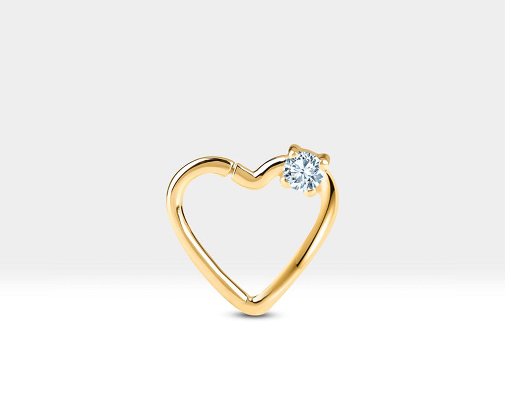 Tek Taş Kalp Pırlantalı Halka Piercing, 13 MM , 1.2 MM, 14K Sarı-Beyaz-Kırmızı Altın | LC00010D