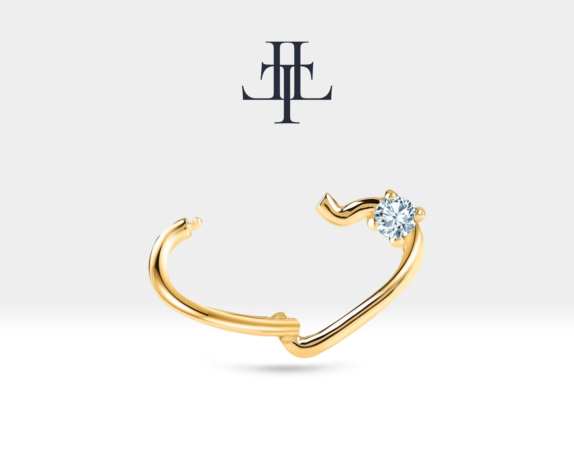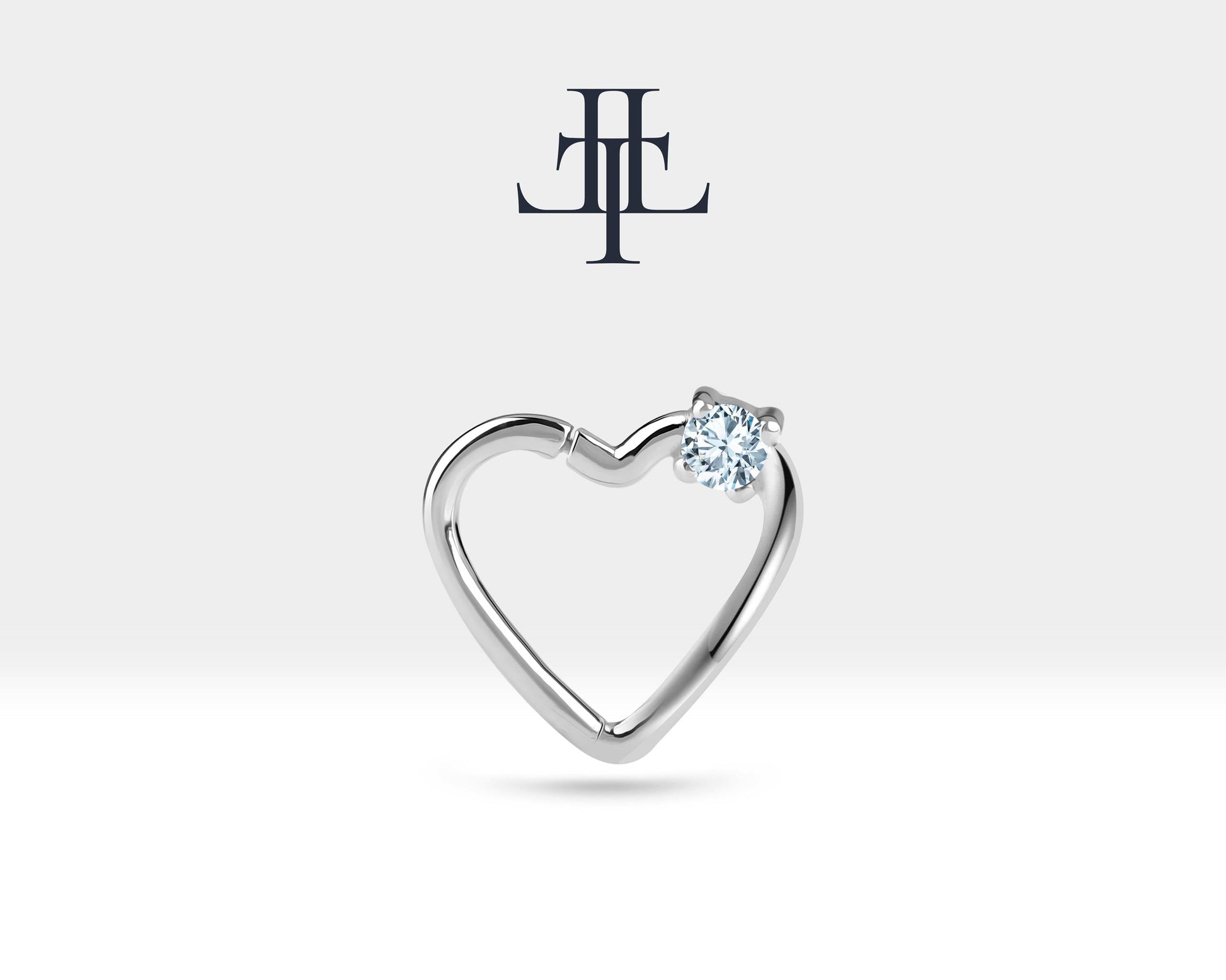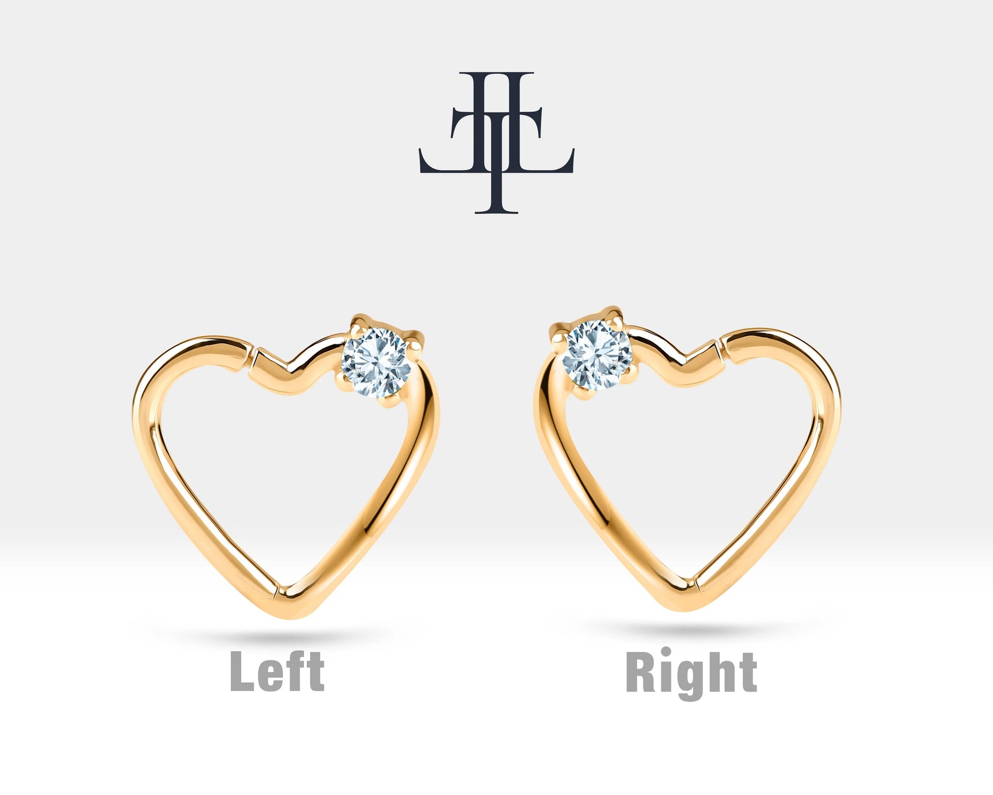 Tek Taş Kalp Pırlantalı Halka Piercing, 13 MM , 1.2 MM, 14K Sarı-Beyaz-Kırmızı Altın | LC00010D