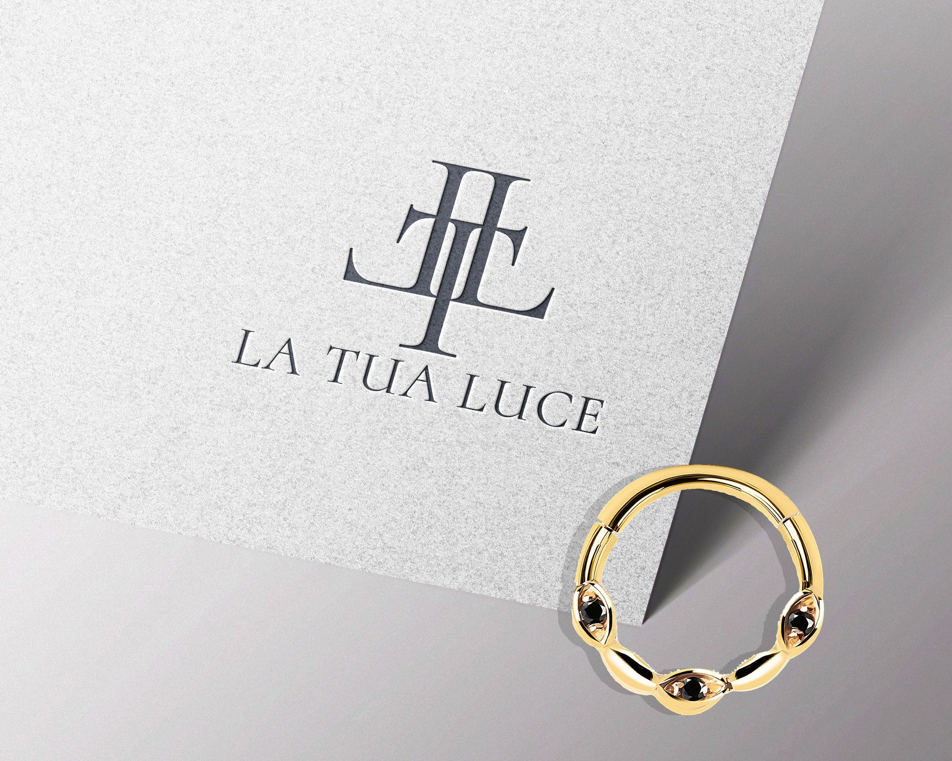 Üç Badem Siyah Pırlantalı Halka Piercing, 10 MM , 1.2 MM, 14K Sarı-Beyaz-Kırmızı Altın | LC00040B