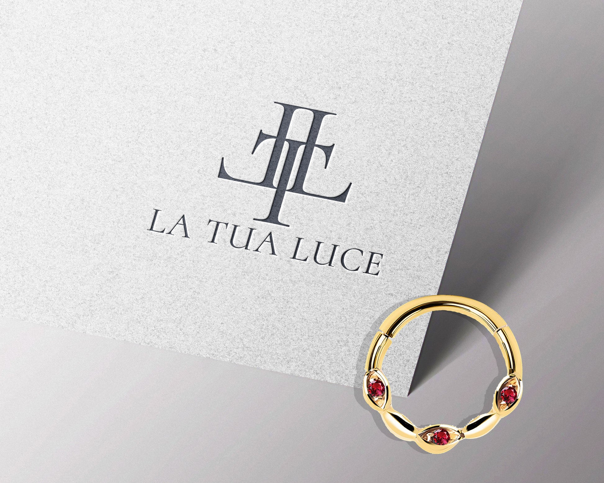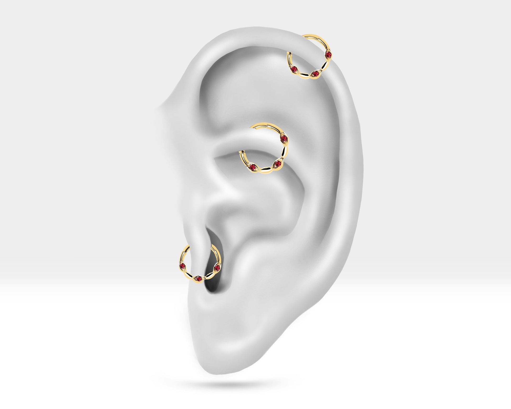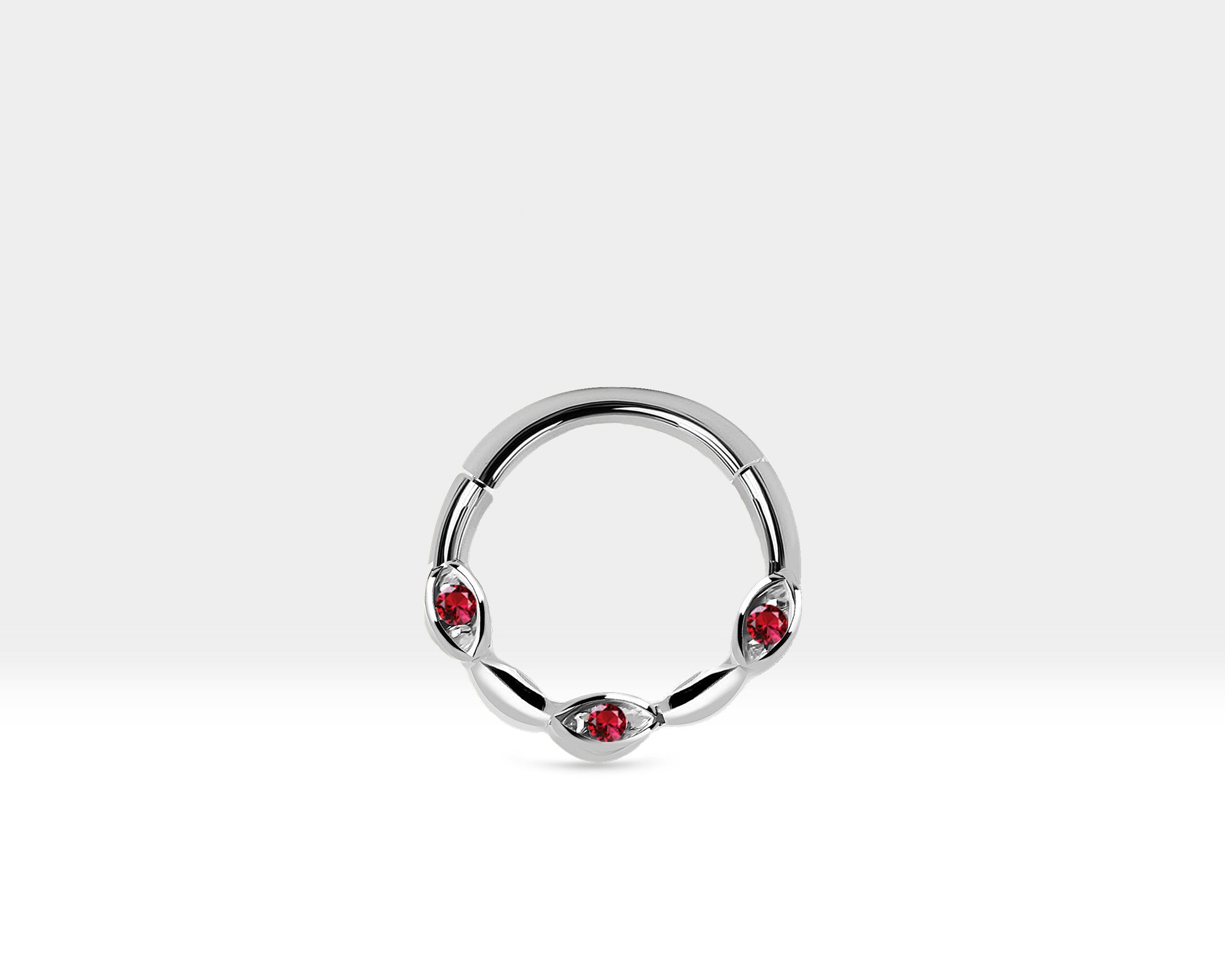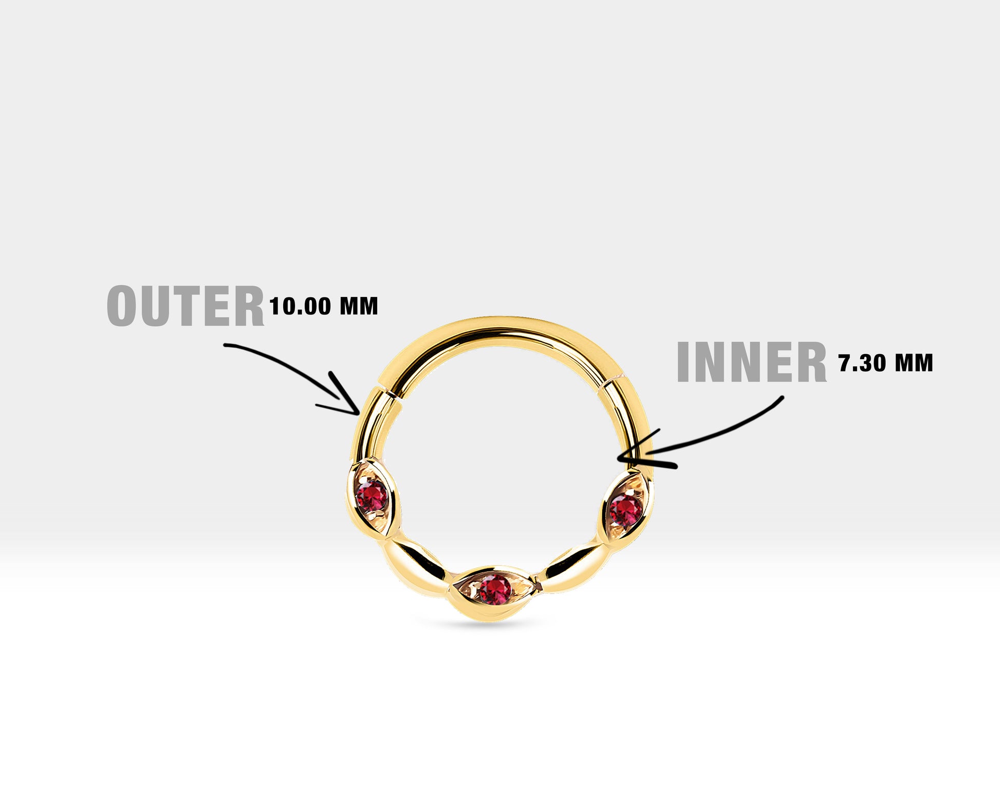 Üç Badem Yakutlu Halka Piercing, 10 MM , 1.2 MM, 14K Sarı-Beyaz-Kırmızı Altın | LC00040R