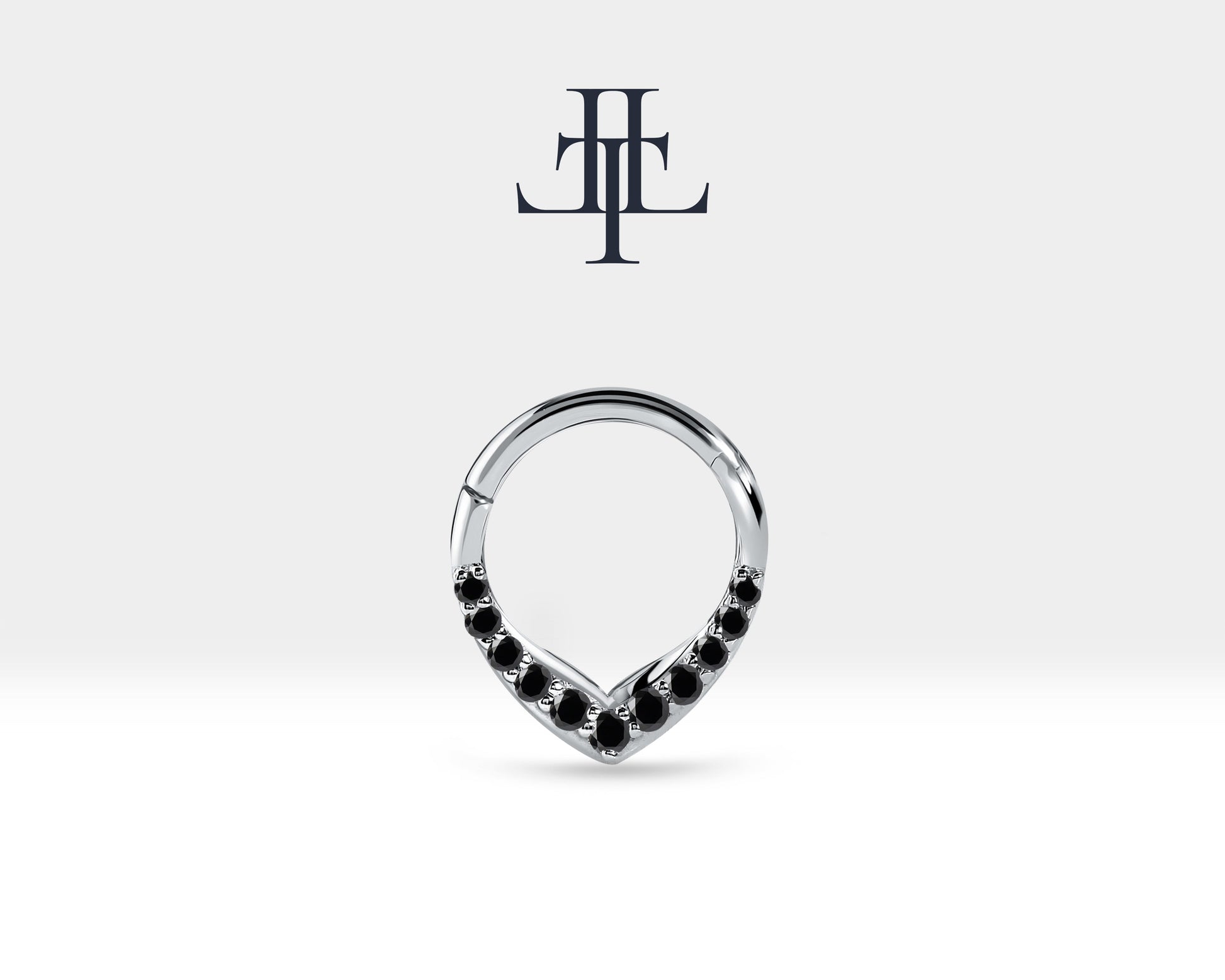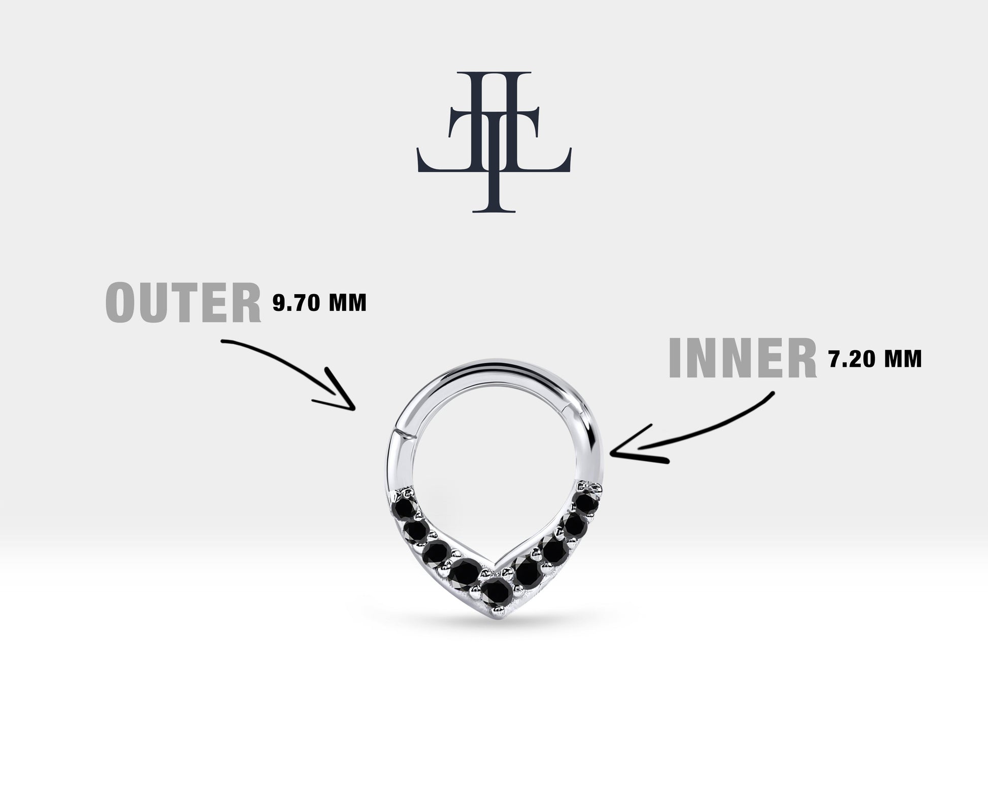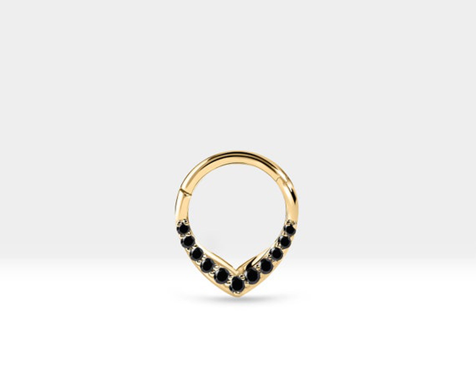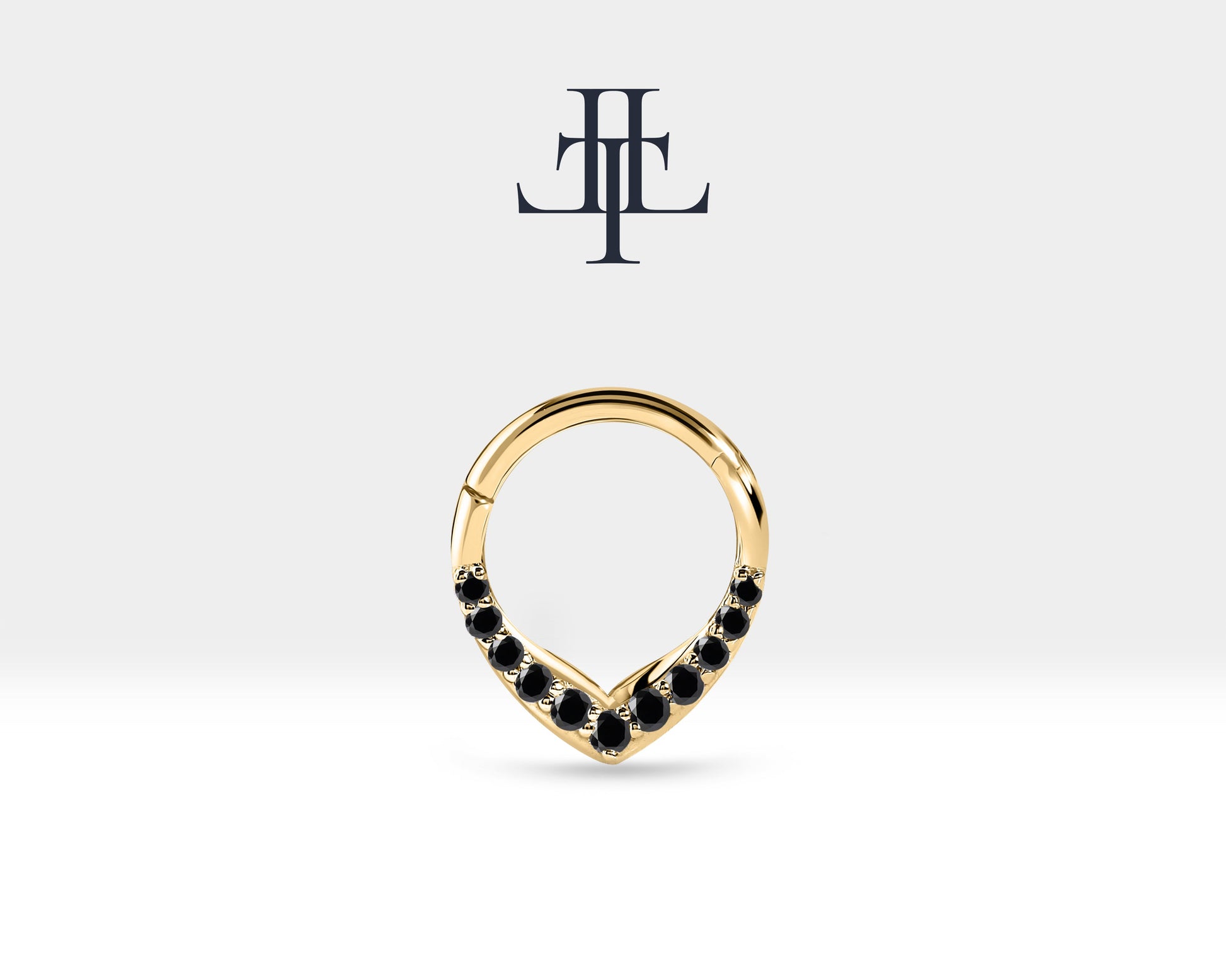 V Siyah Pırlantalı Halka Piercing, 9.70-11.50 MM , 1.2 MM, 14K Sarı-Beyaz-Kırmızı Altın | LC00049B