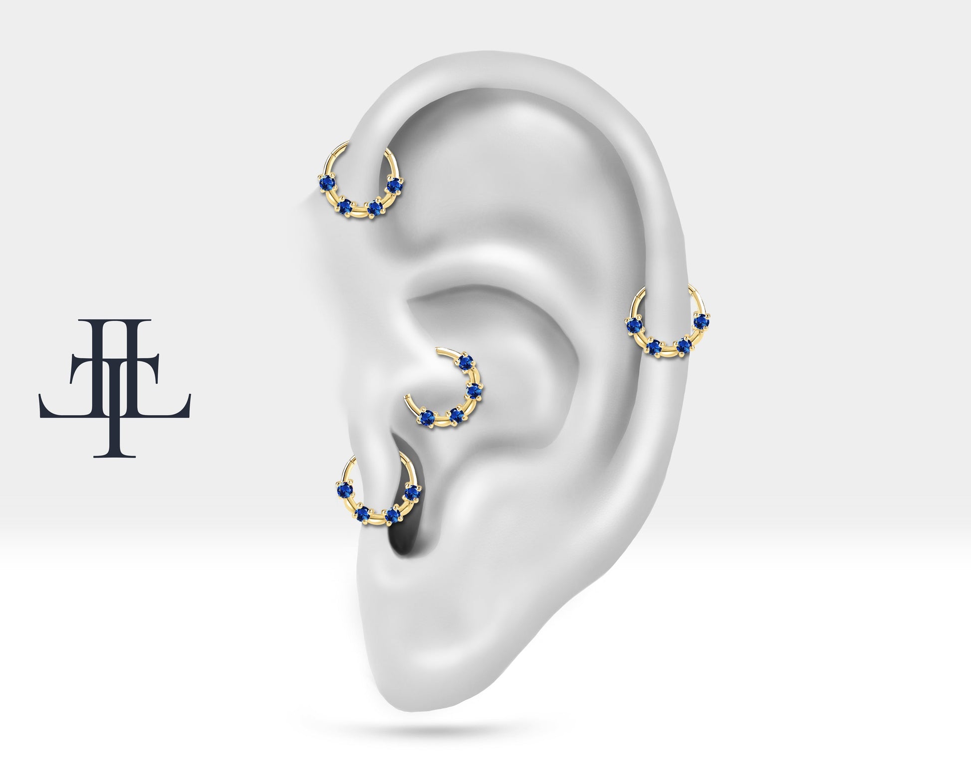 Bezeme Safirli Halka Piercing, 13 MM , 1.2 MM, 14K Sarı-Beyaz-Kırmızı Altın | LC00009S