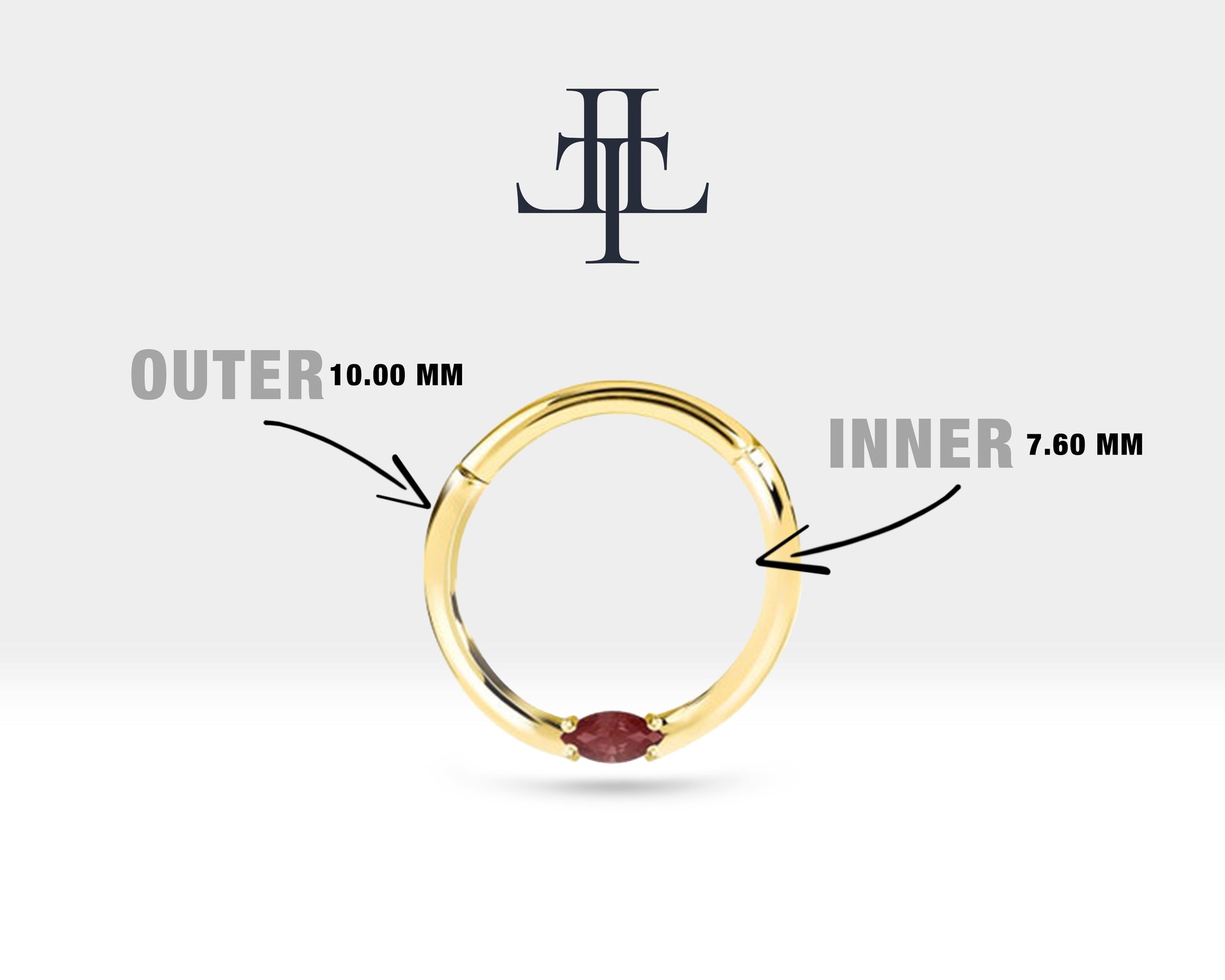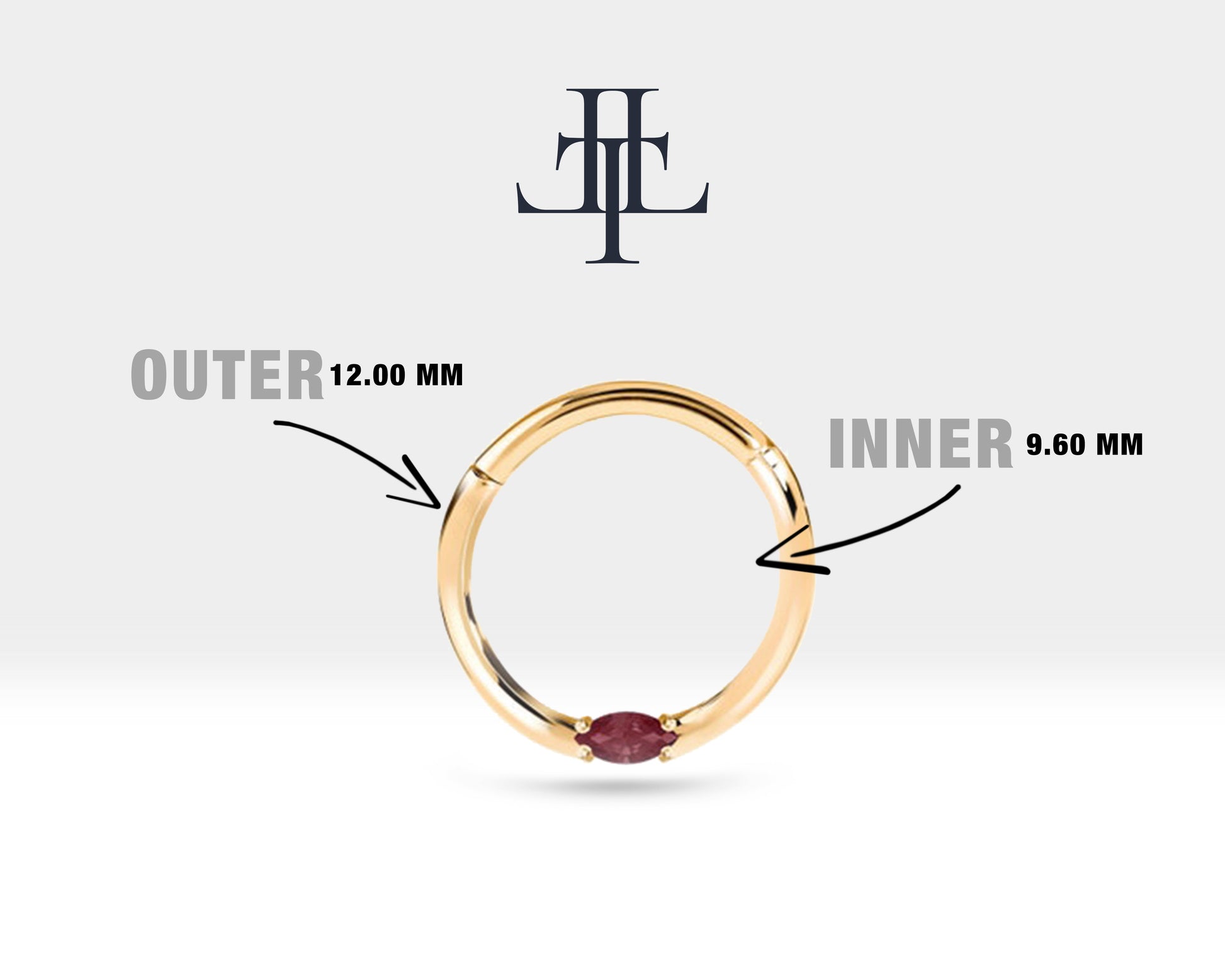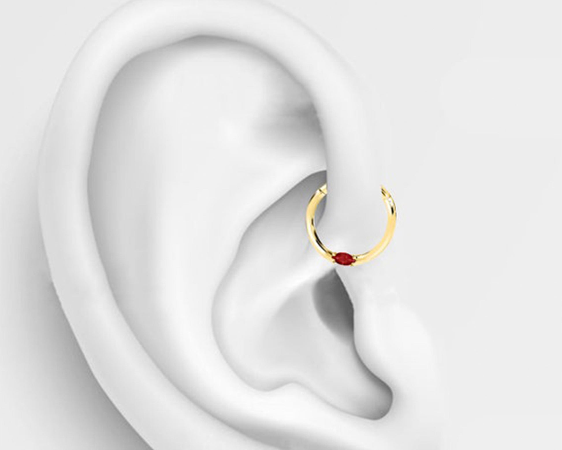 Markiz Yakutlu Halka Piercing, 10-12 MM , 1.2 MM, 14K Sarı-Beyaz-Kırmızı Altın | LC00028R