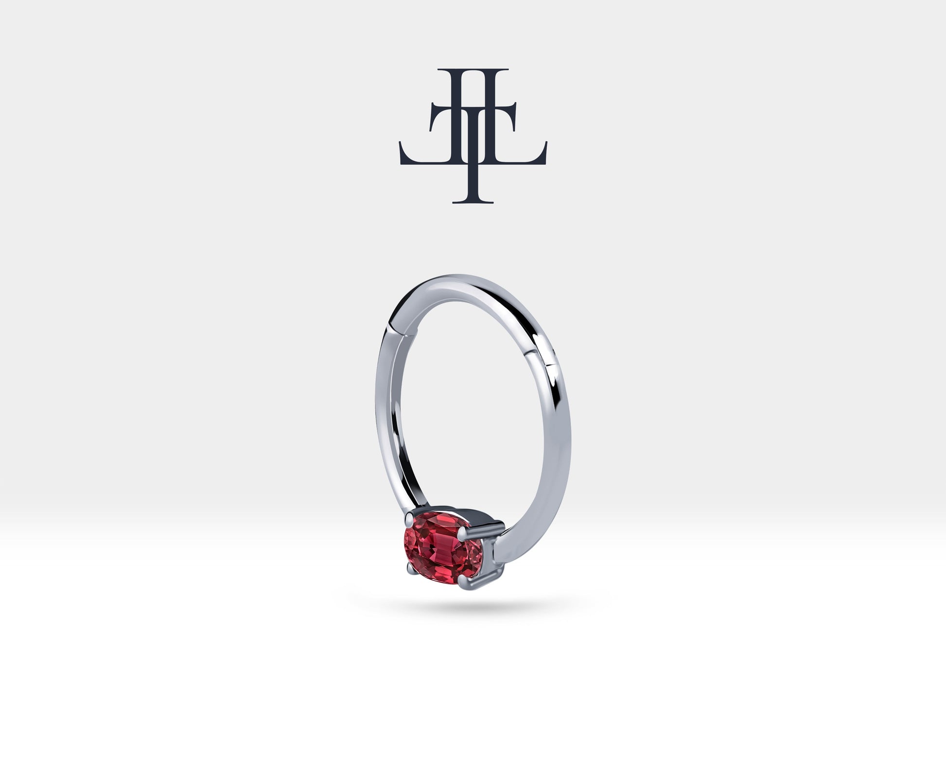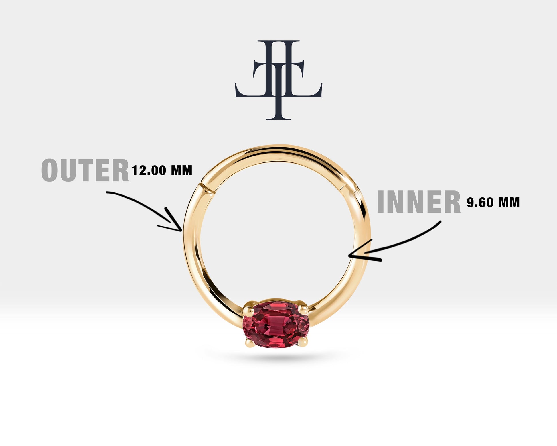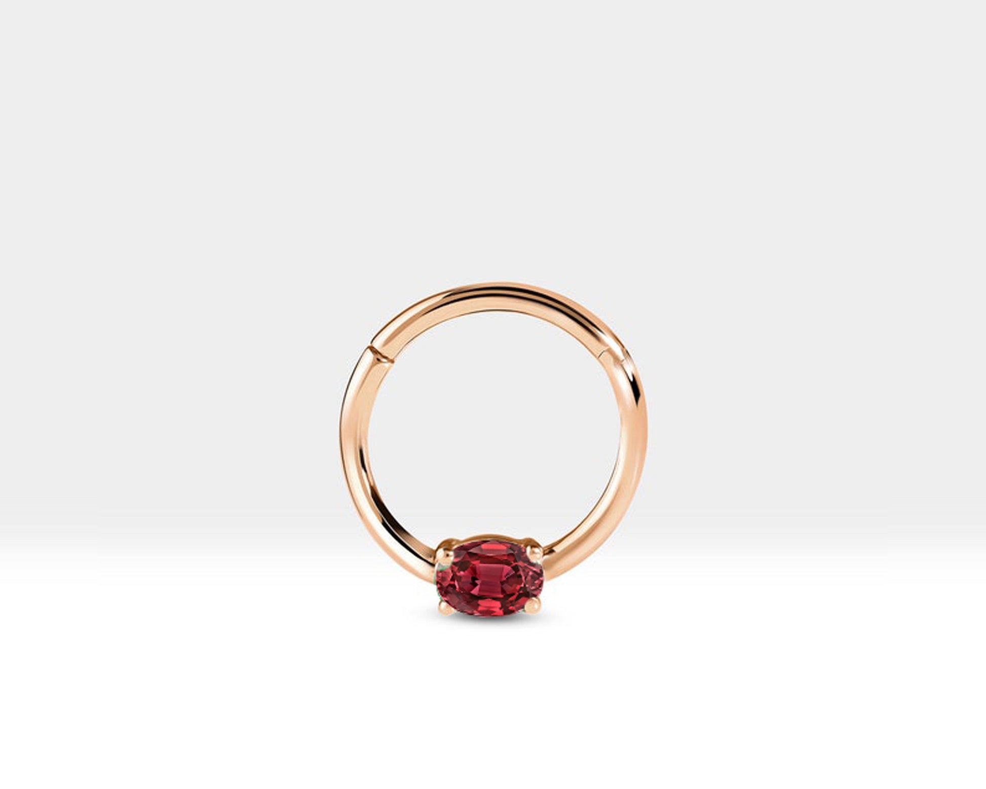 Oval Yakutlu Halka Piercing, 10-12 MM , 1.2 MM, 14K Sarı-Beyaz-Kırmızı Altın | LC00035R