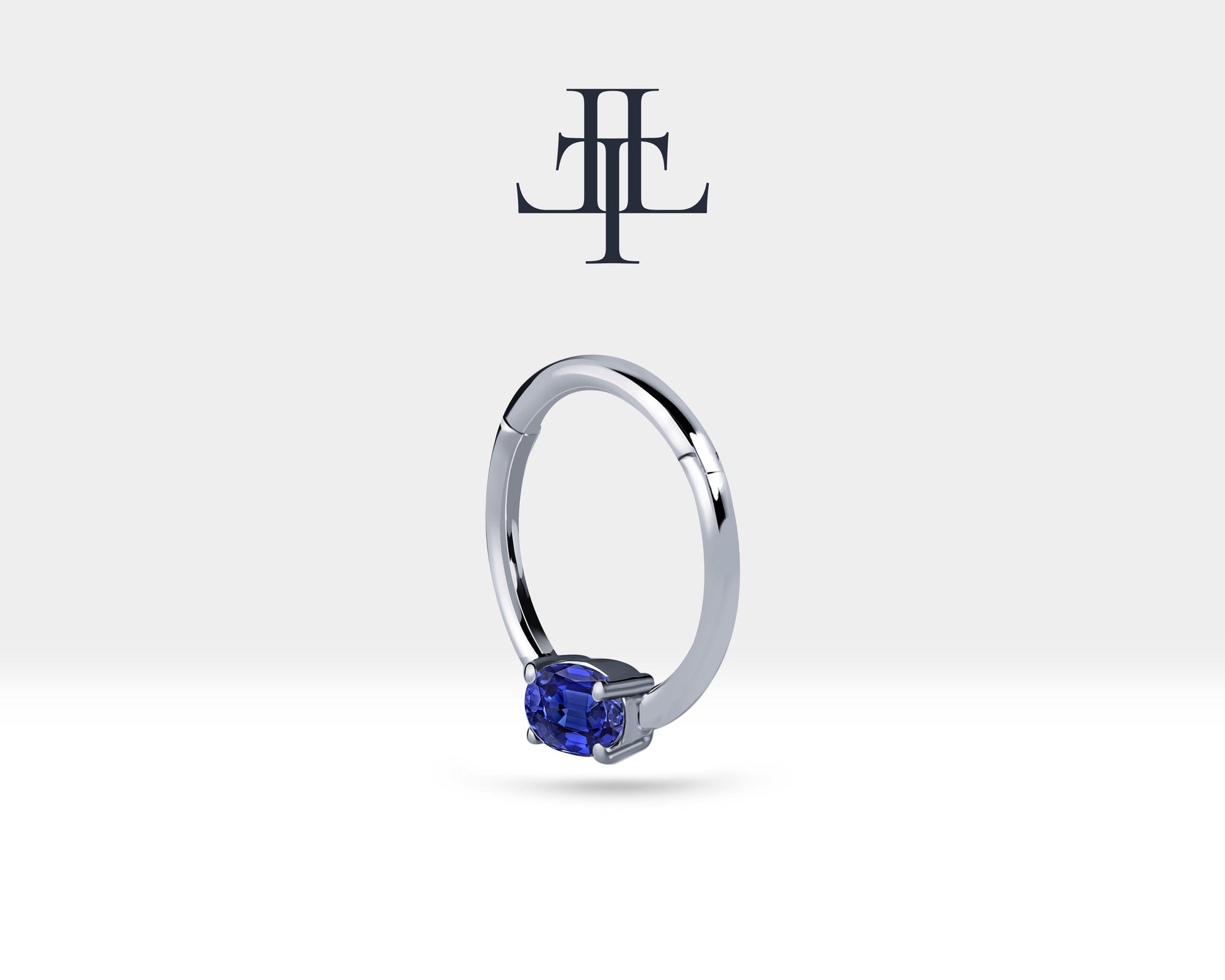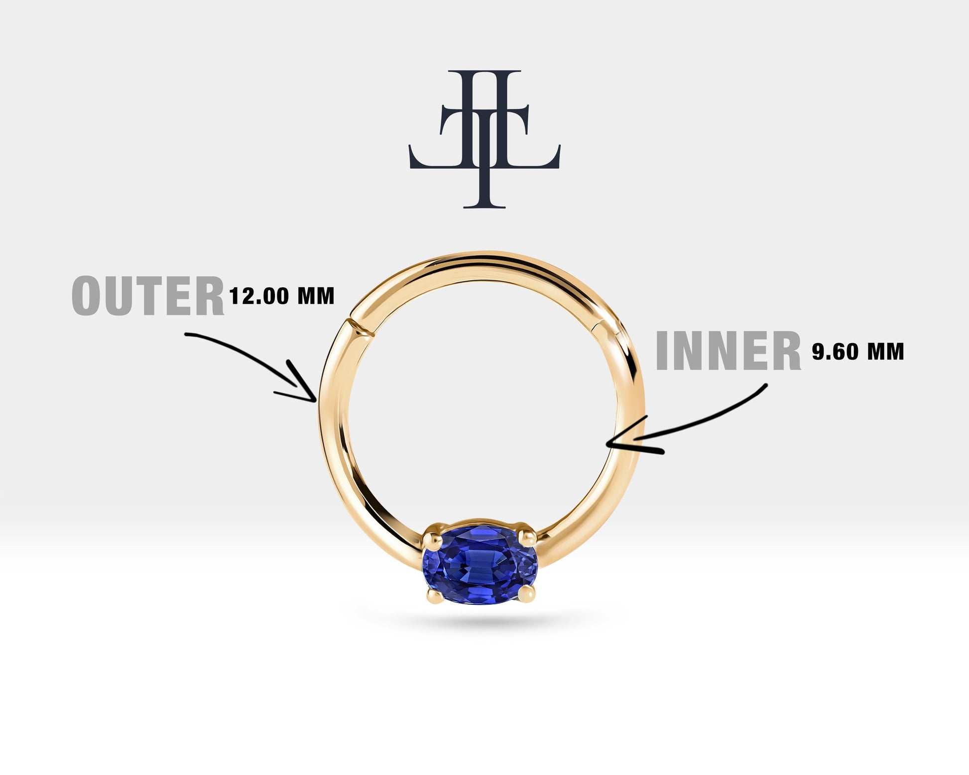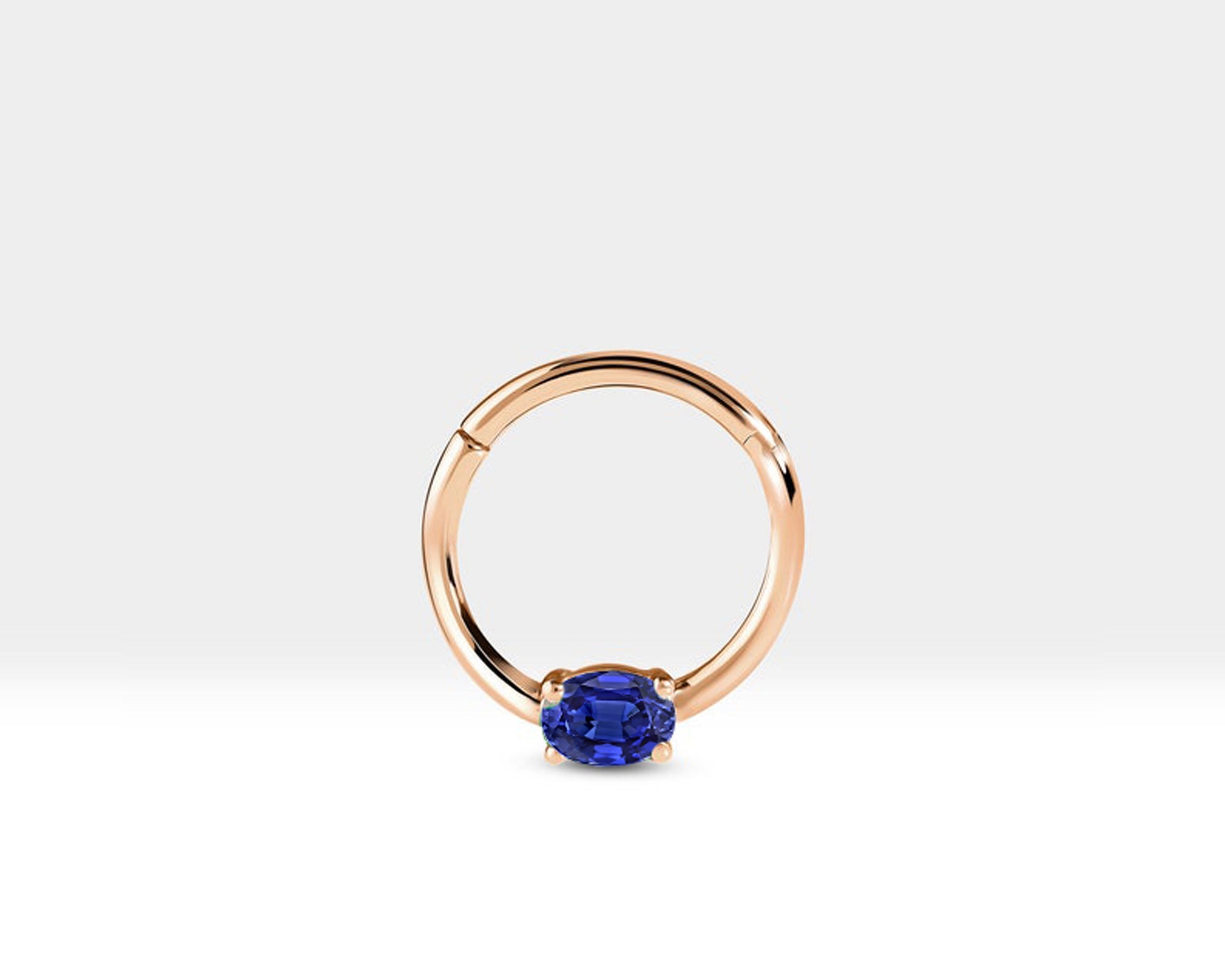 Oval Safirli Halka Piercing, 10-12 MM , 1.2 MM, 14K Sarı-Beyaz-Kırmızı Altın | LC00035S
