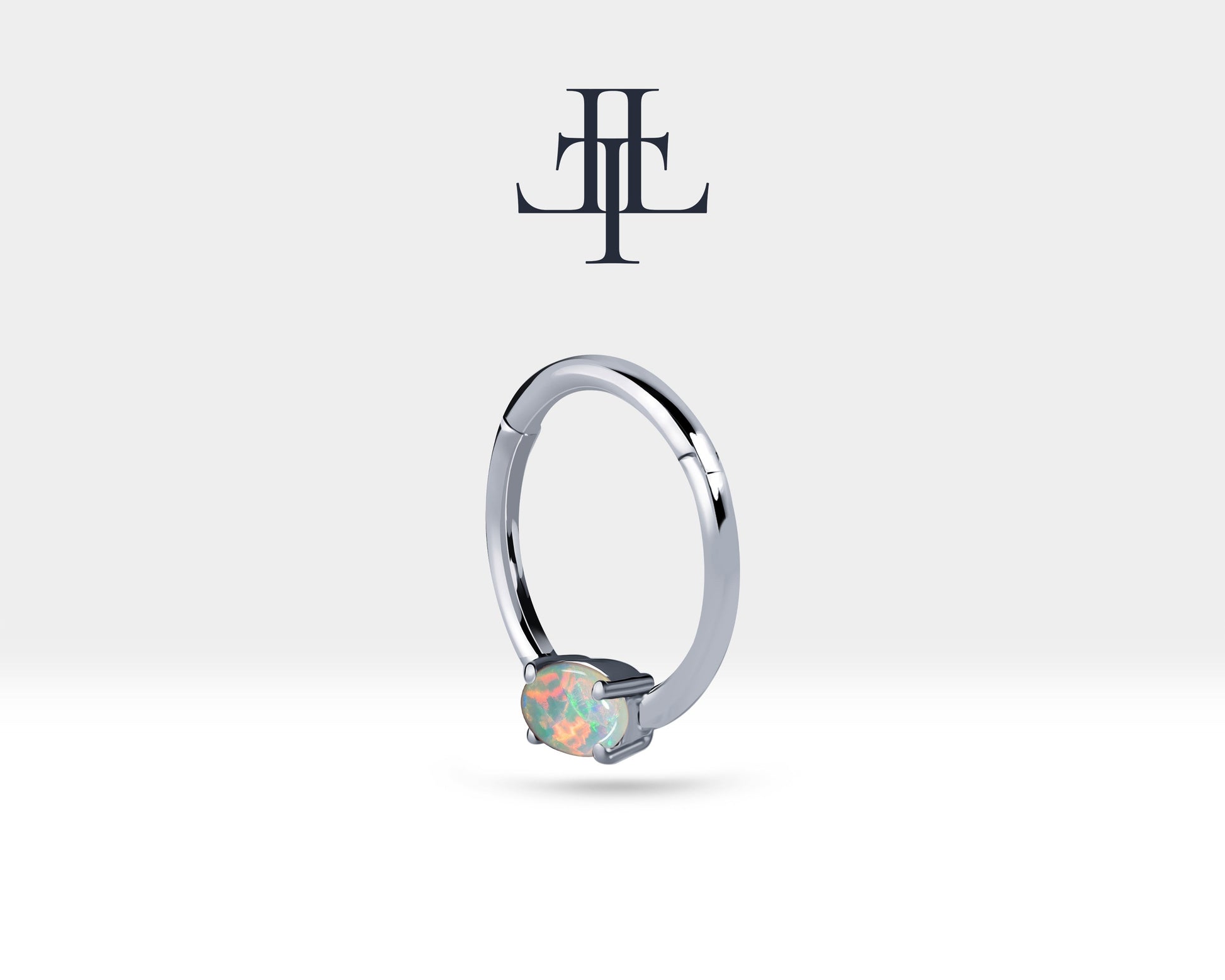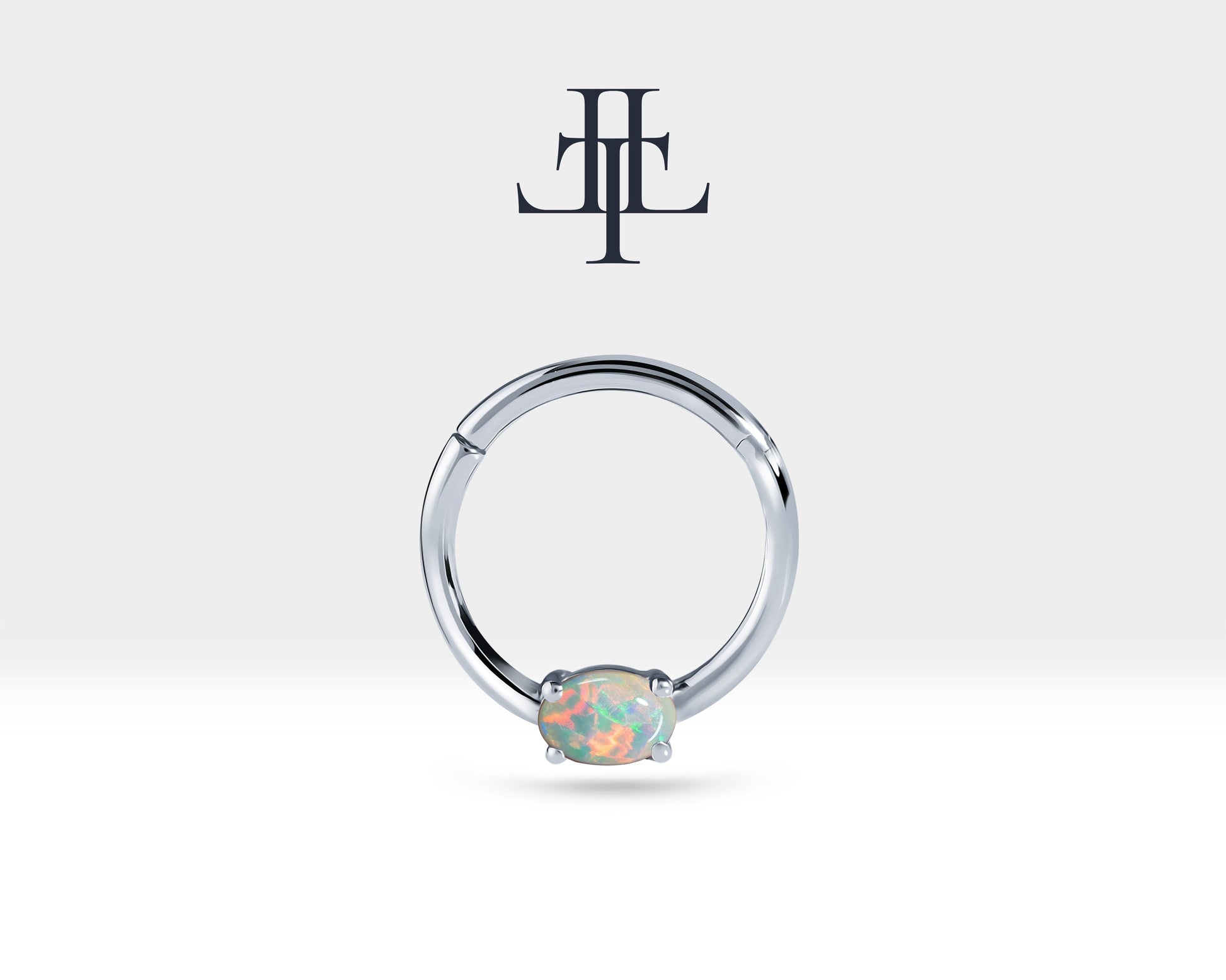 Oval Afrikan Opalli Halka Piercing, 10-12 MM , 1.2 MM, 14K Sarı-Beyaz-Kırmızı Altın | LC00035O