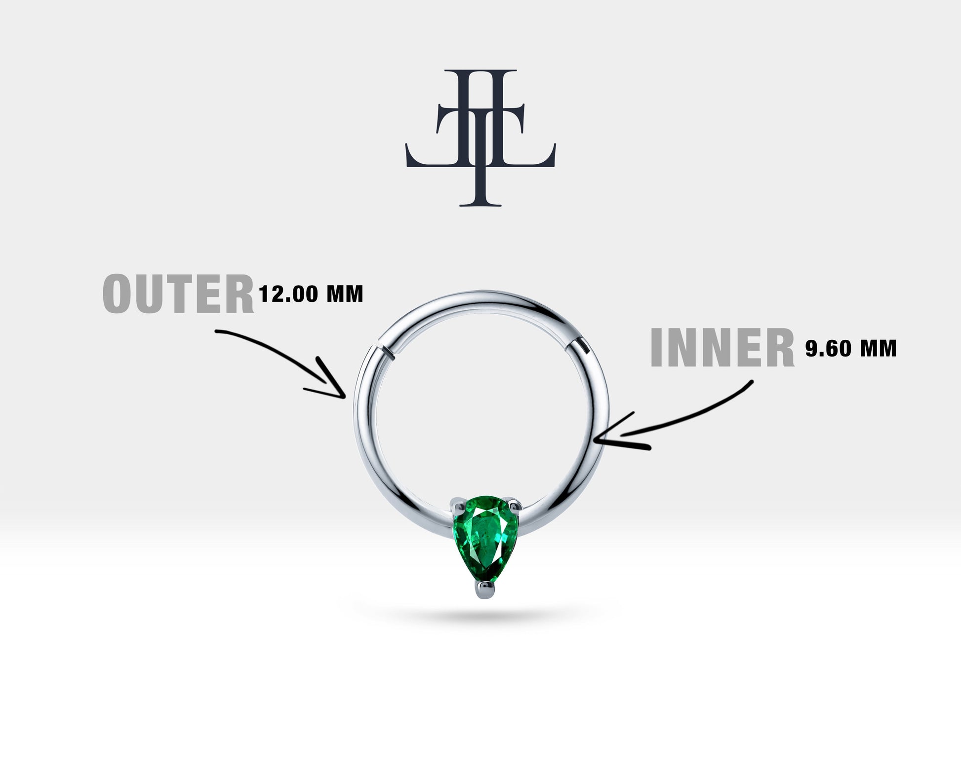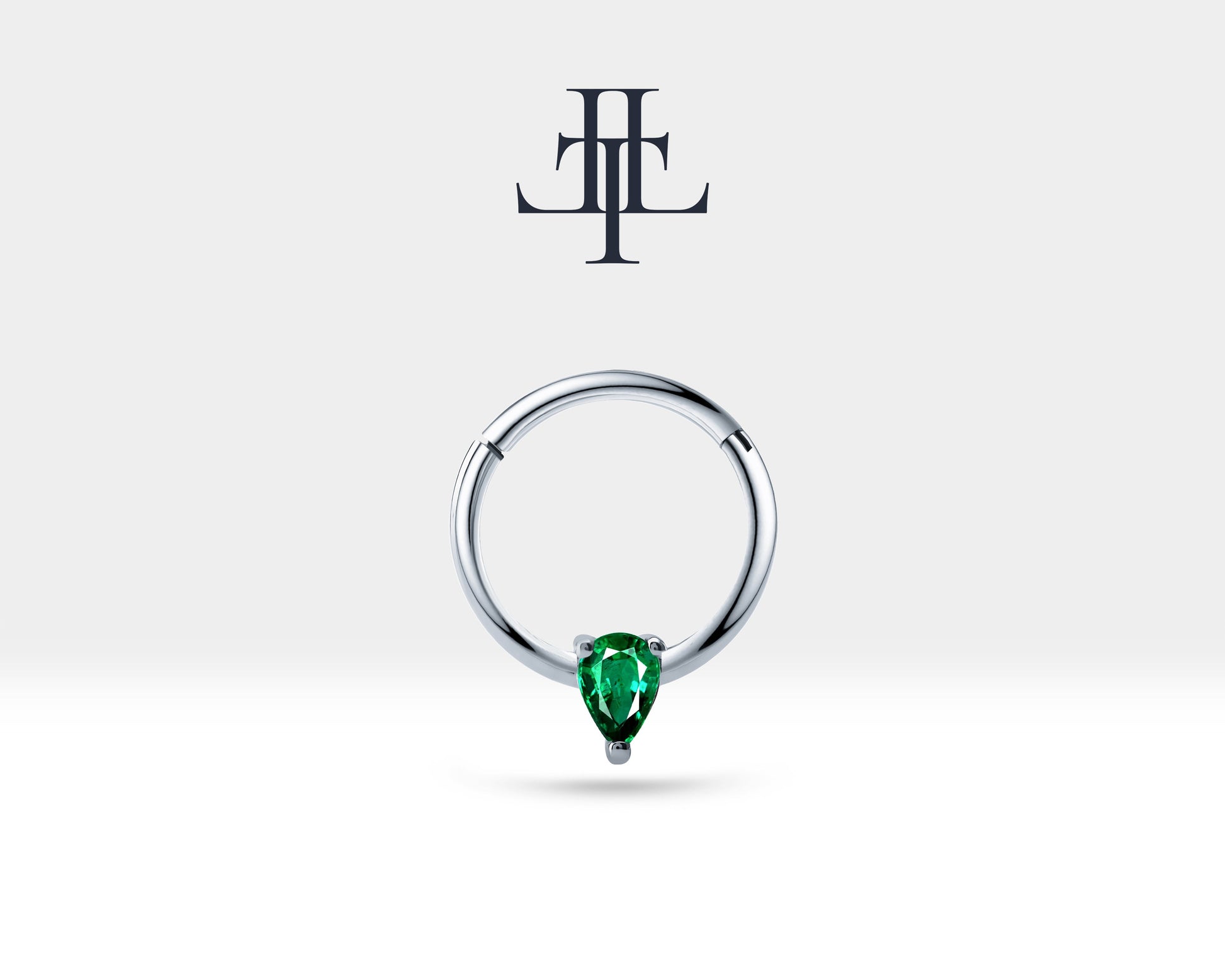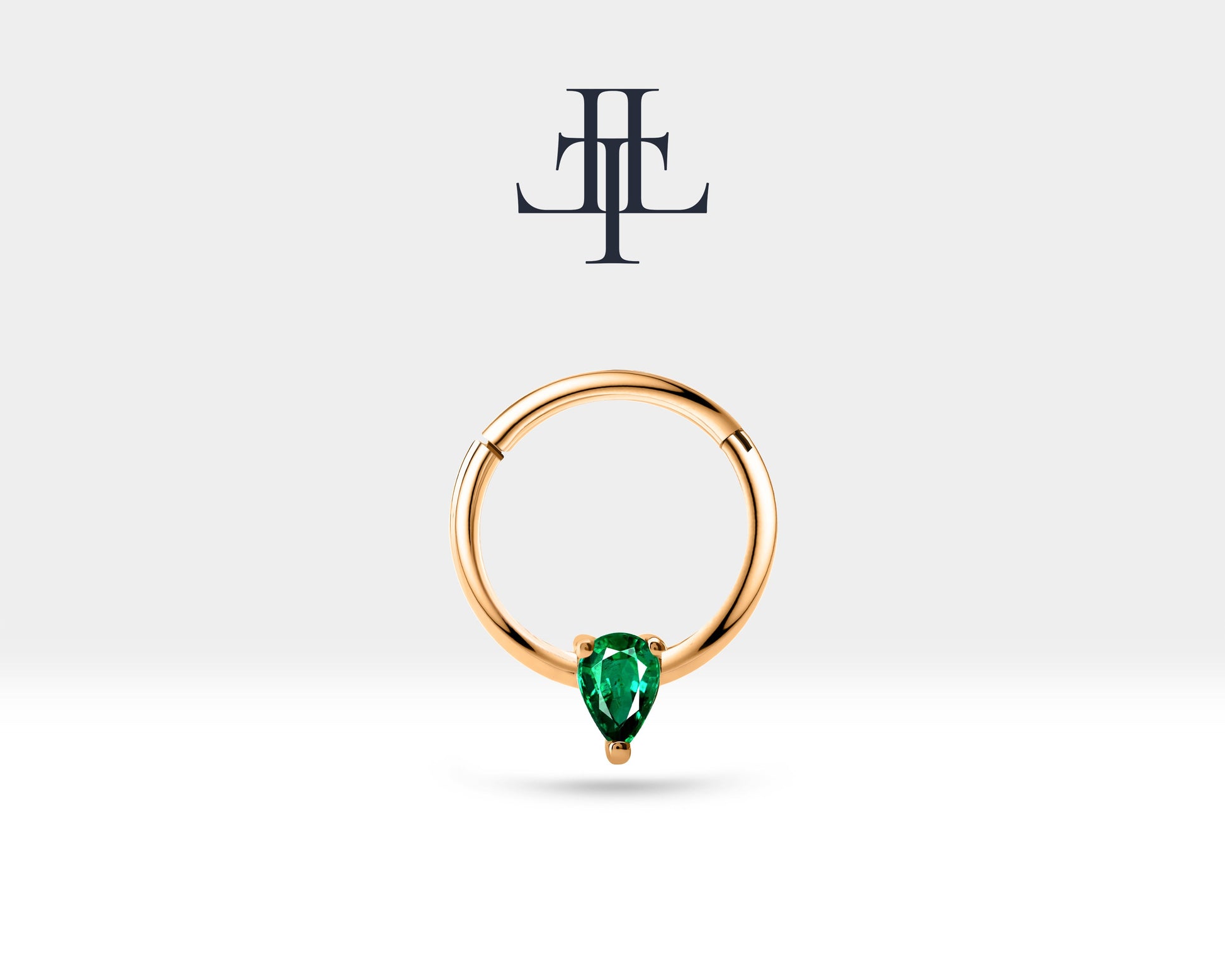 Damla Zümrütlü Halka Piercing, 12 MM , 1.2 MM, 14K Sarı-Beyaz-Kırmızı Altın | LC00012R