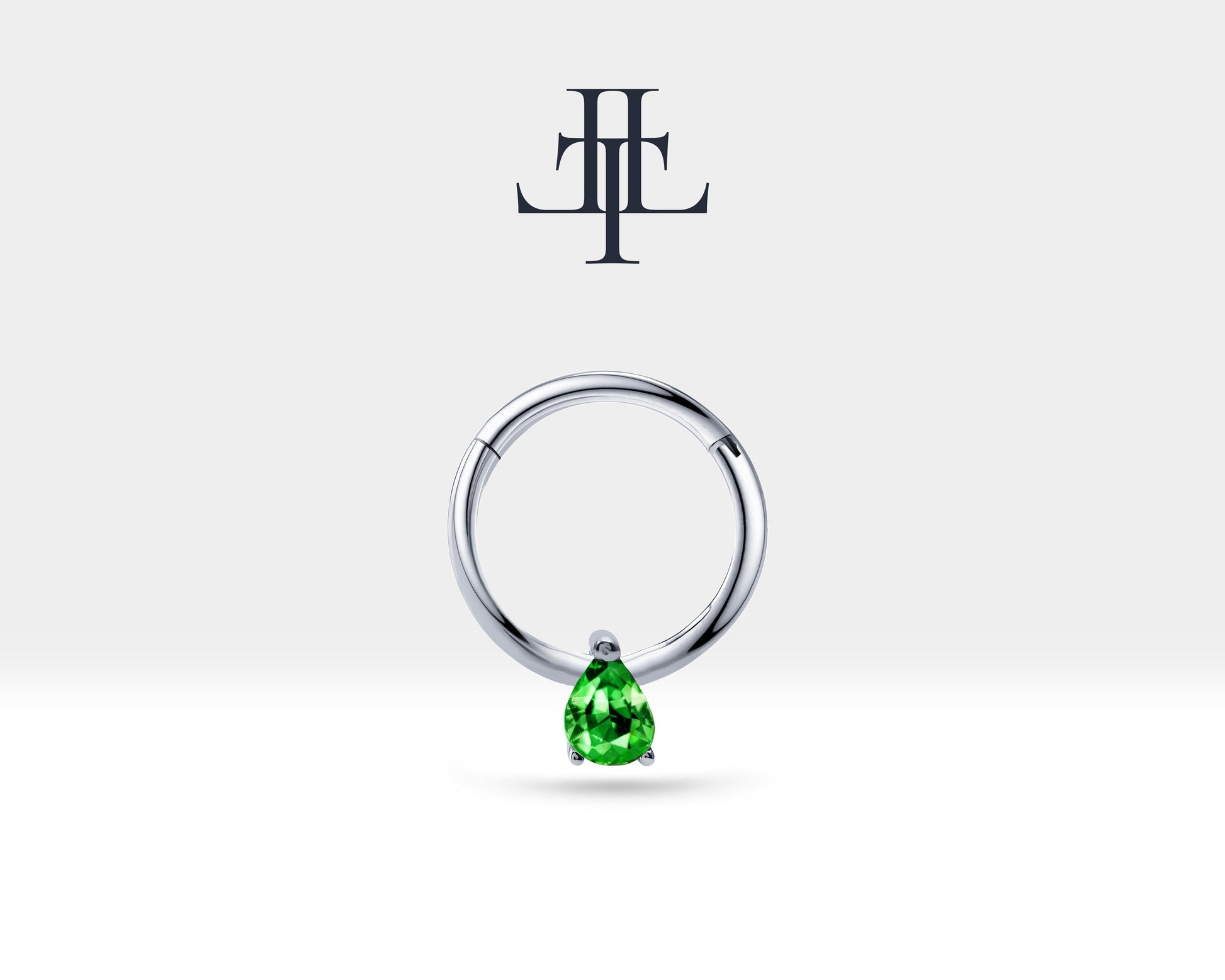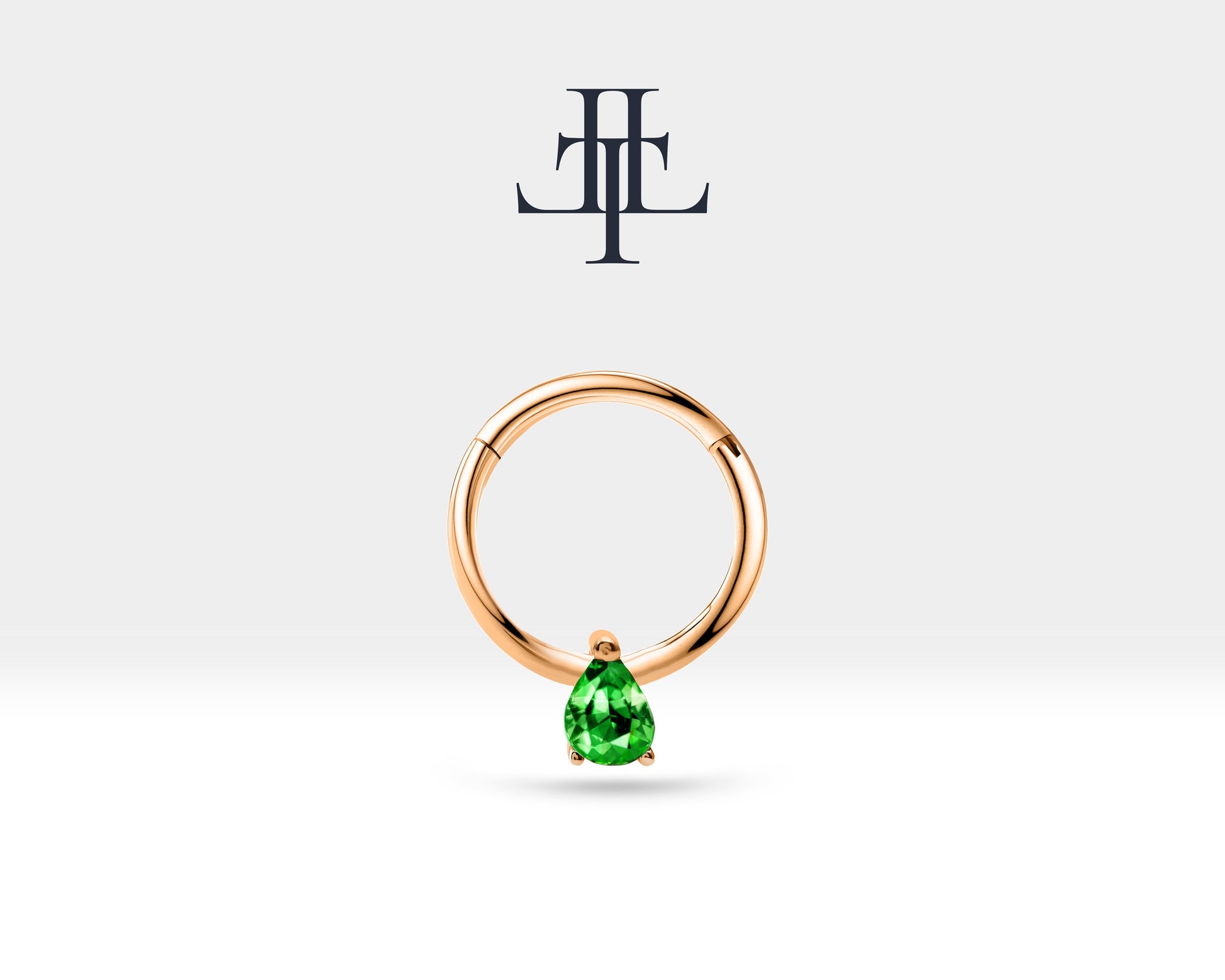 Damla Zümrütlü Halka Piercing, 12 MM , 1.2 MM, 14K Sarı-Beyaz-Kırmızı Altın | LC00011E