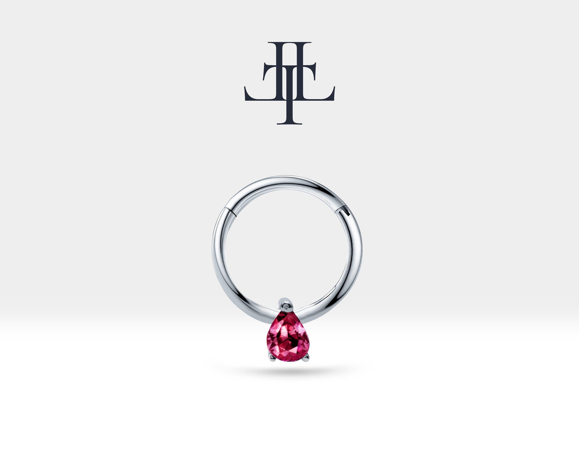Damla Yakutlu Halka Piercing, 12 MM , 1.2 MM, 14K Sarı-Beyaz-Kırmızı Altın | LC00011R