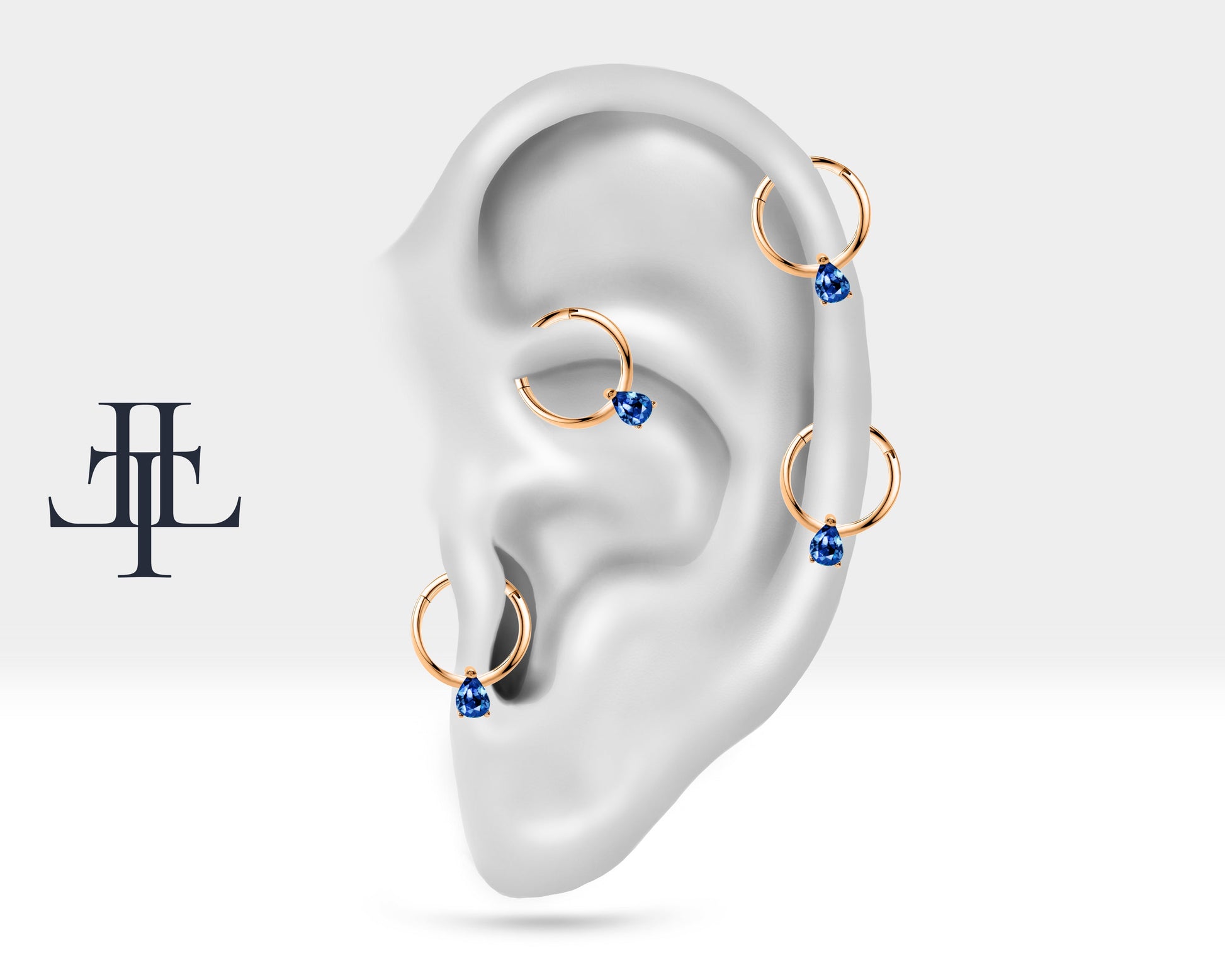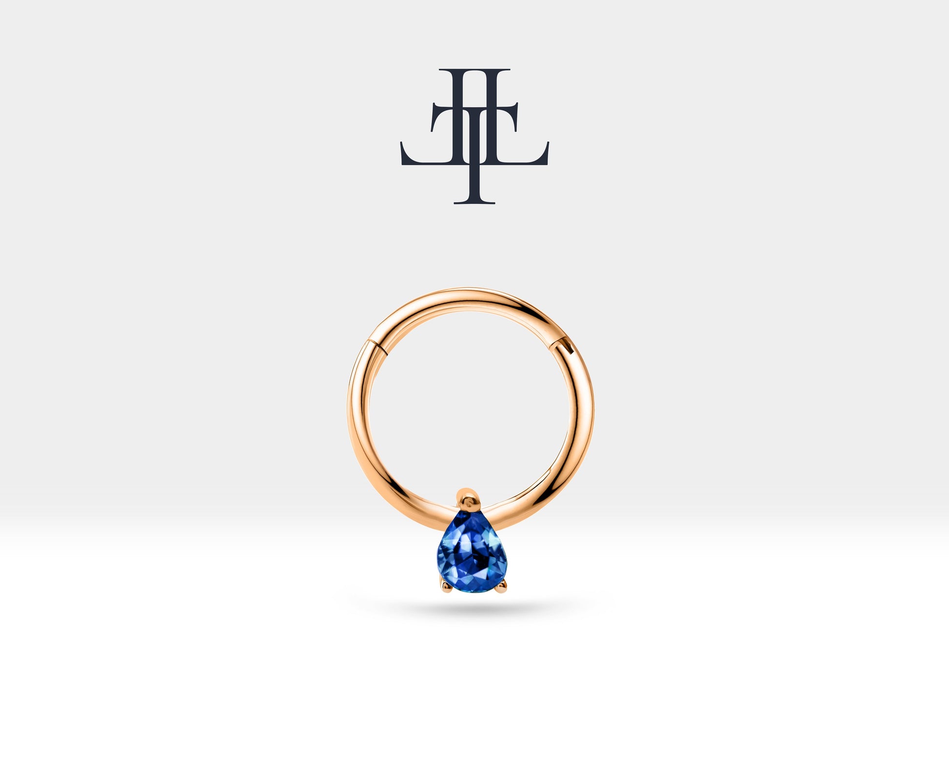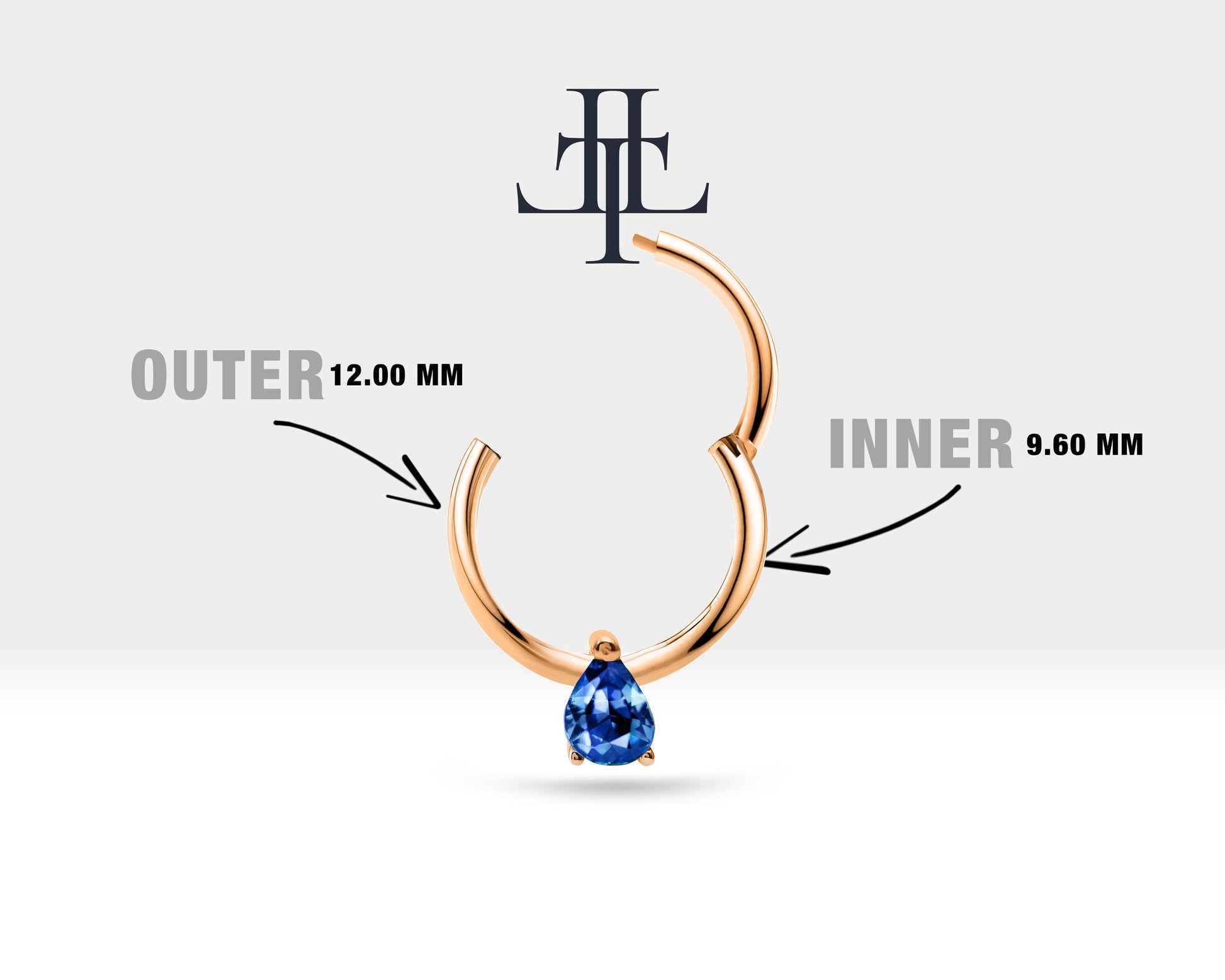 Damla Safirli Halka Piercing, 12 MM , 1.2 MM, 14K Sarı-Beyaz-Kırmızı Altın | LC00011S