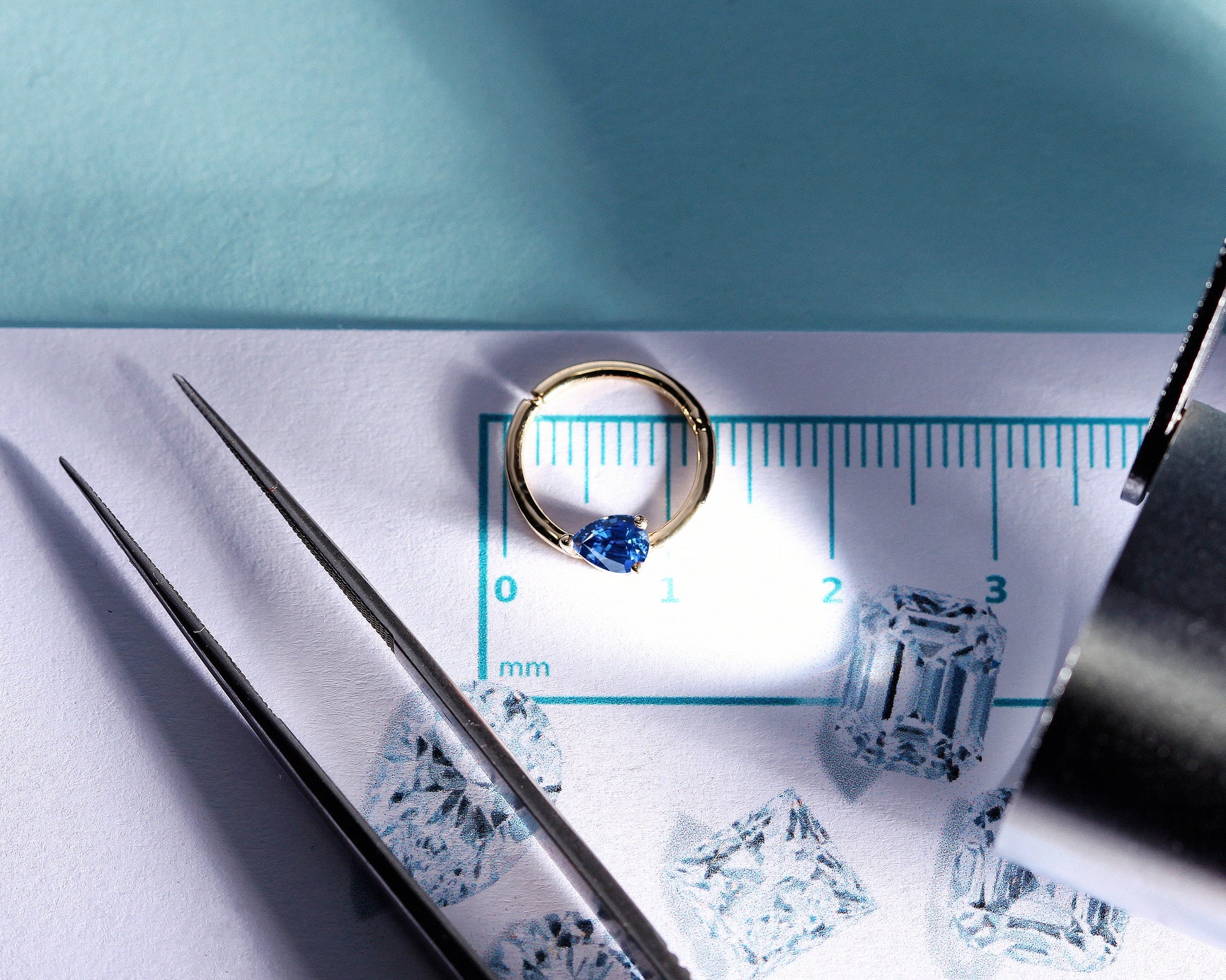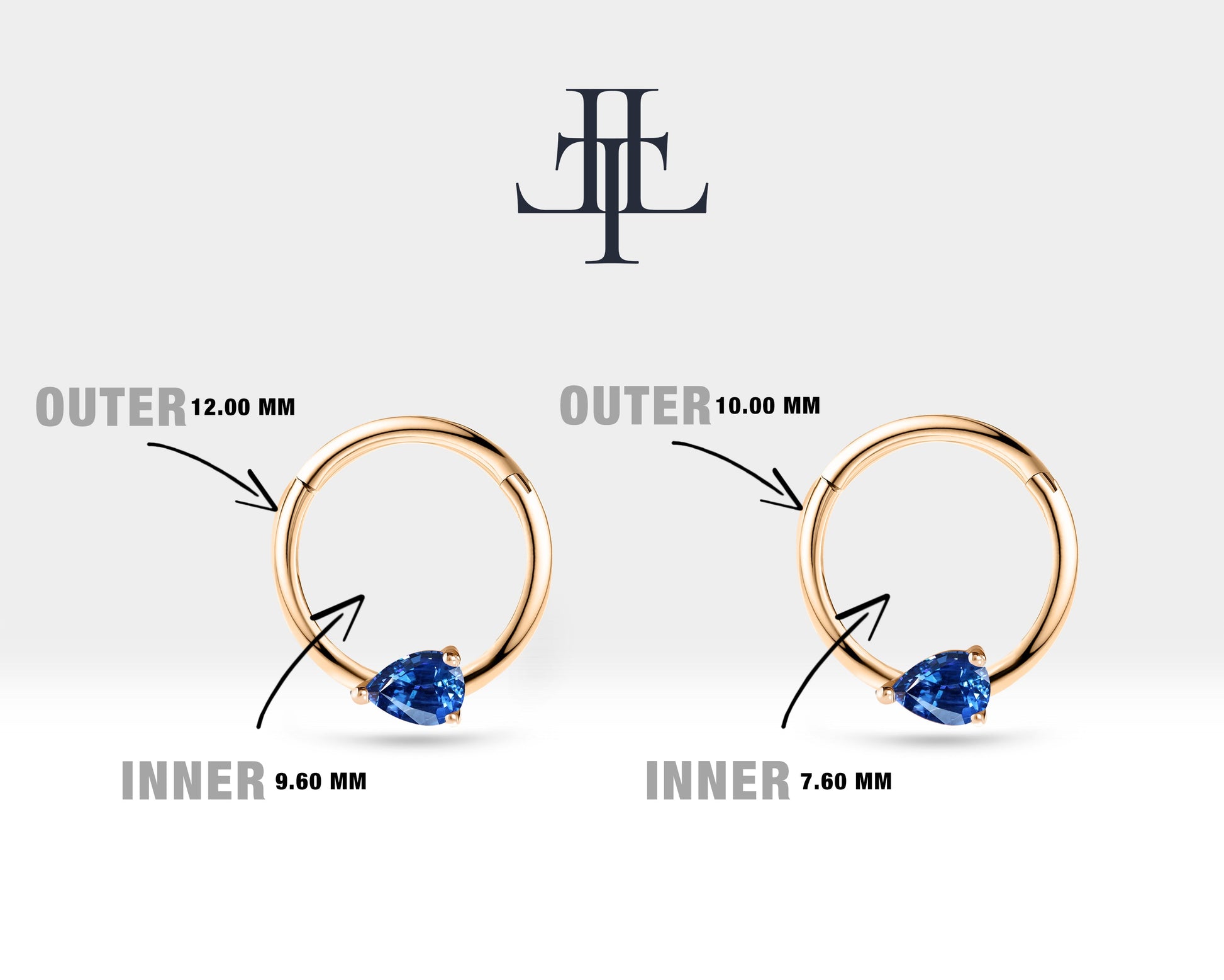 Damla Safirli Halka Piercing, 10-12 MM , 1.2 MM, 14K Sarı-Beyaz-Kırmızı Altın | LC00027S