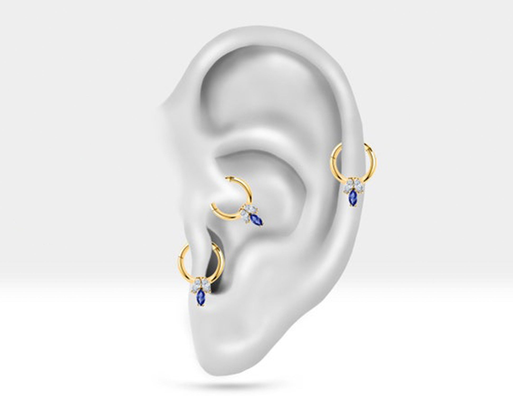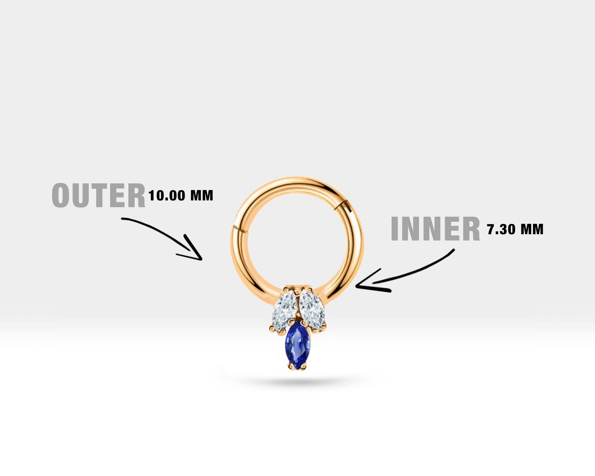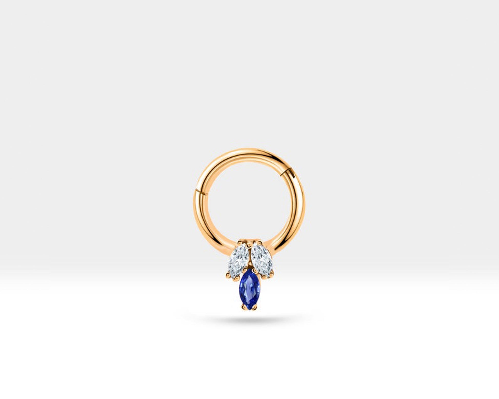 Üçlü Markiz Safir ve Pırlantalı Halka Piercing, 10 MM , 1.2 MM, 14K Sarı-Beyaz-Kırmızı Altın | LC00022DS