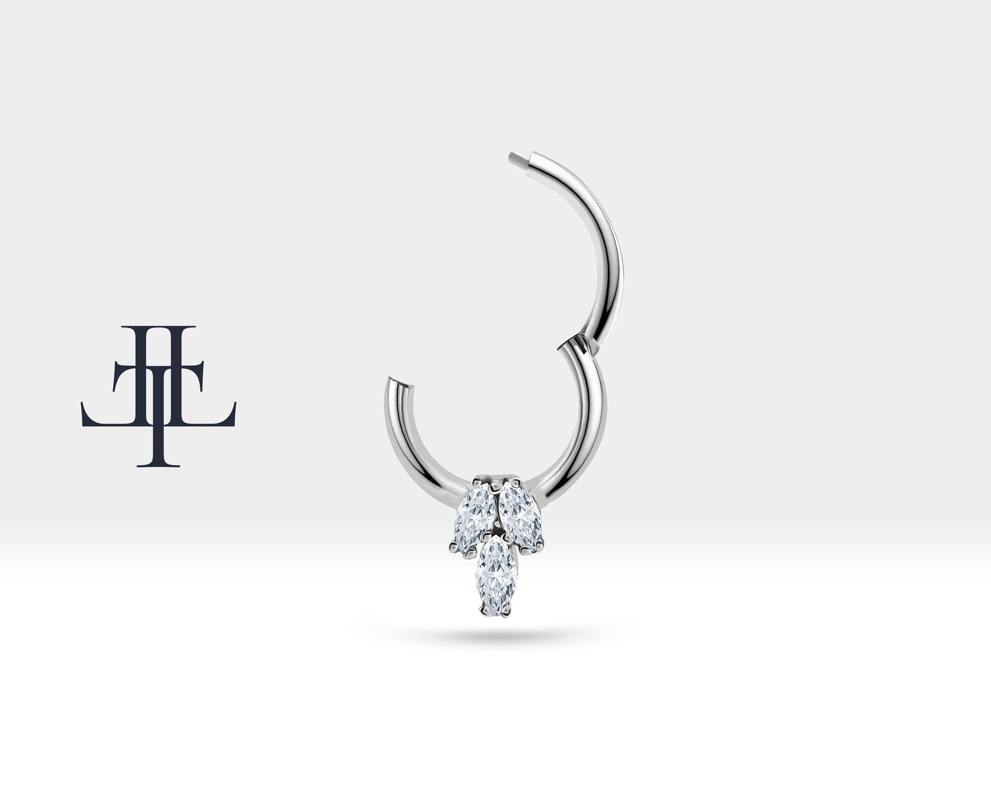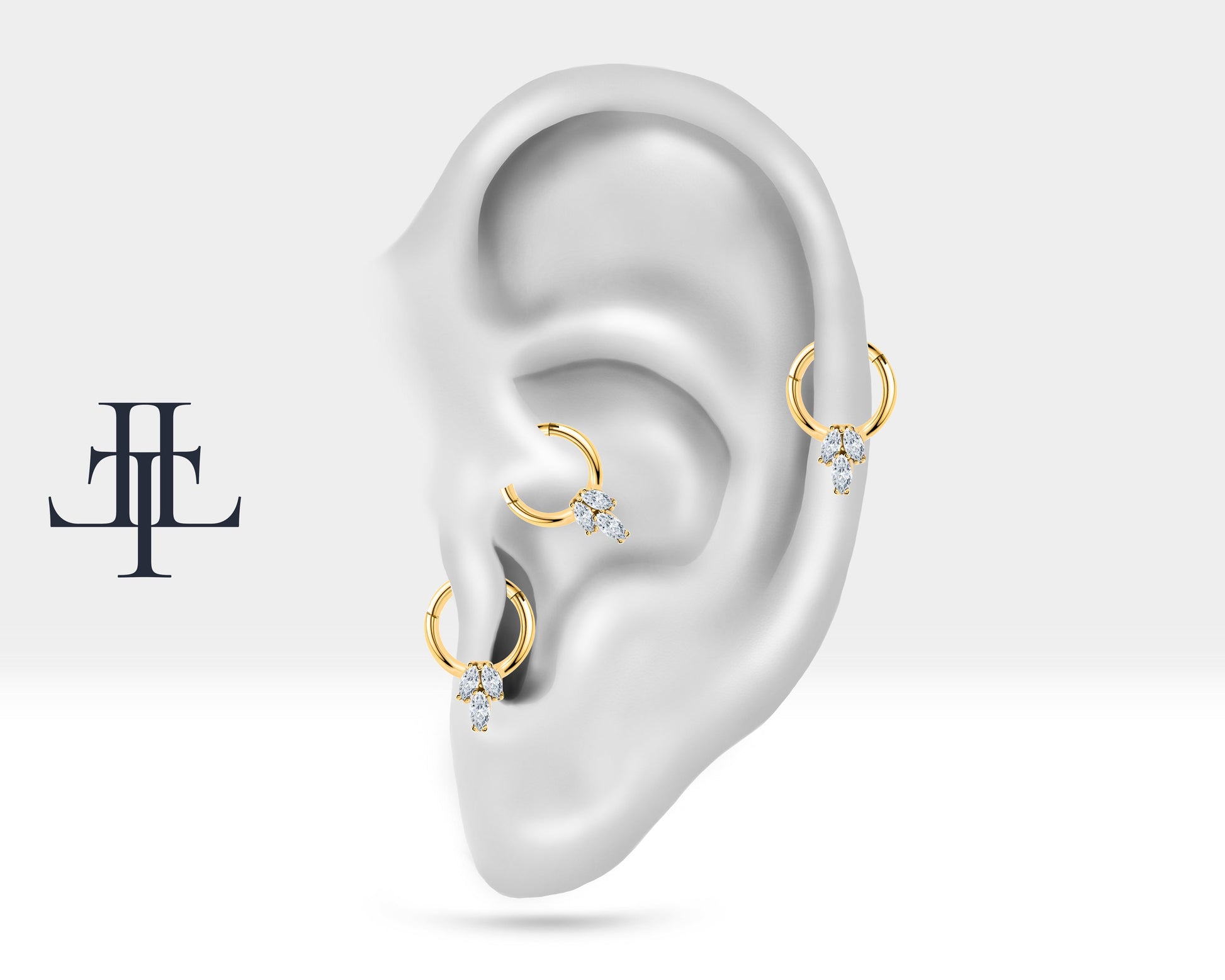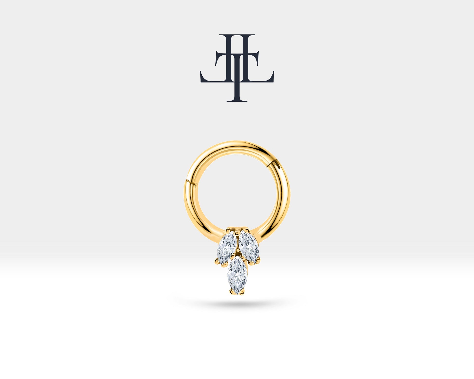 Üçlü Markiz Pırlantalı Halka Piercing, 10 MM , 1.2 MM, 14K Sarı-Beyaz-Kırmızı Altın | LC00021D