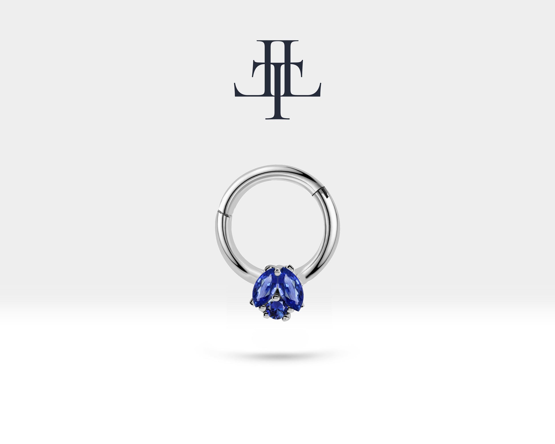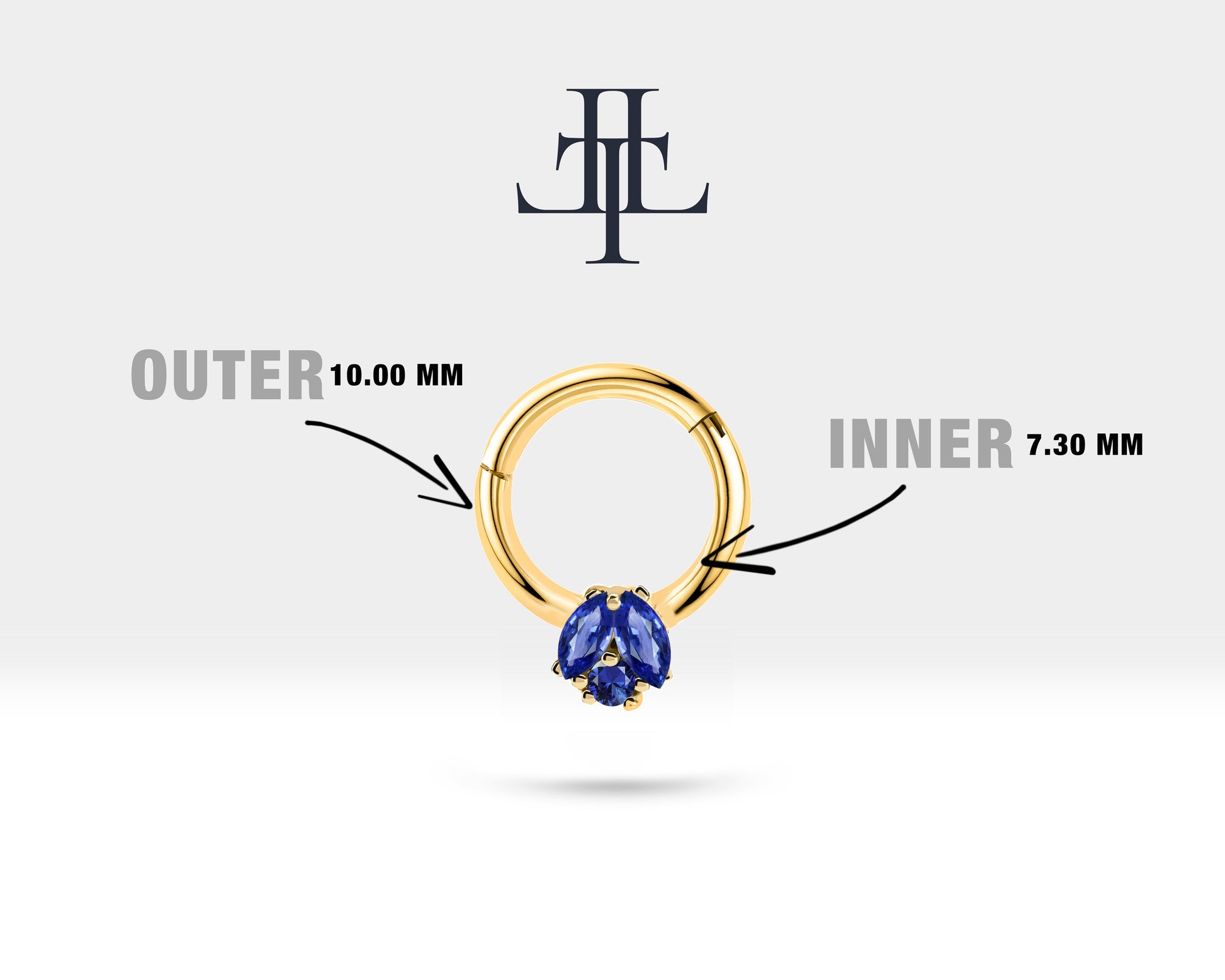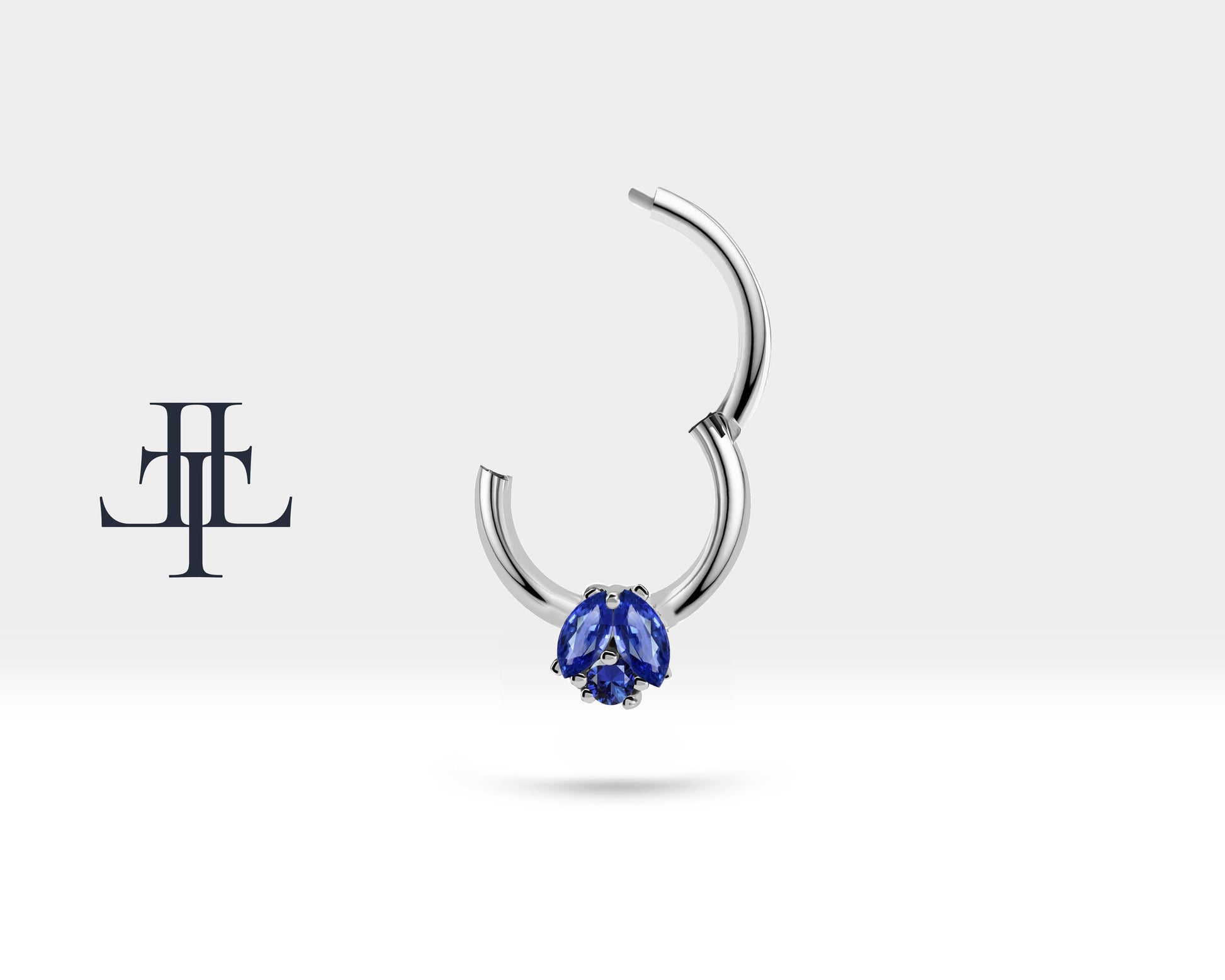 İkili Markiz Safirli Halka Piercing, 10 MM , 1.2 MM, 14K Sarı-Beyaz-Kırmızı Altın | LC00026S