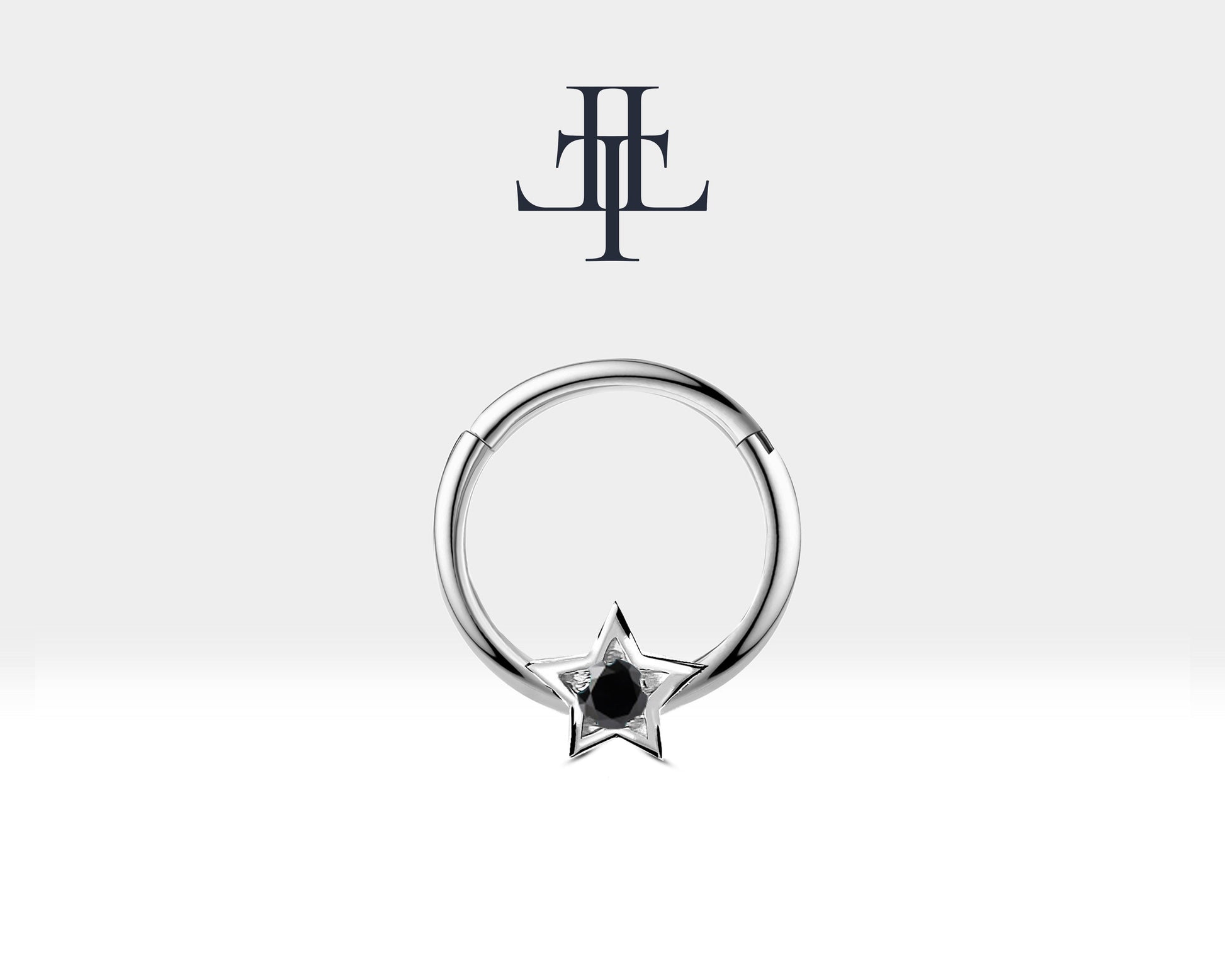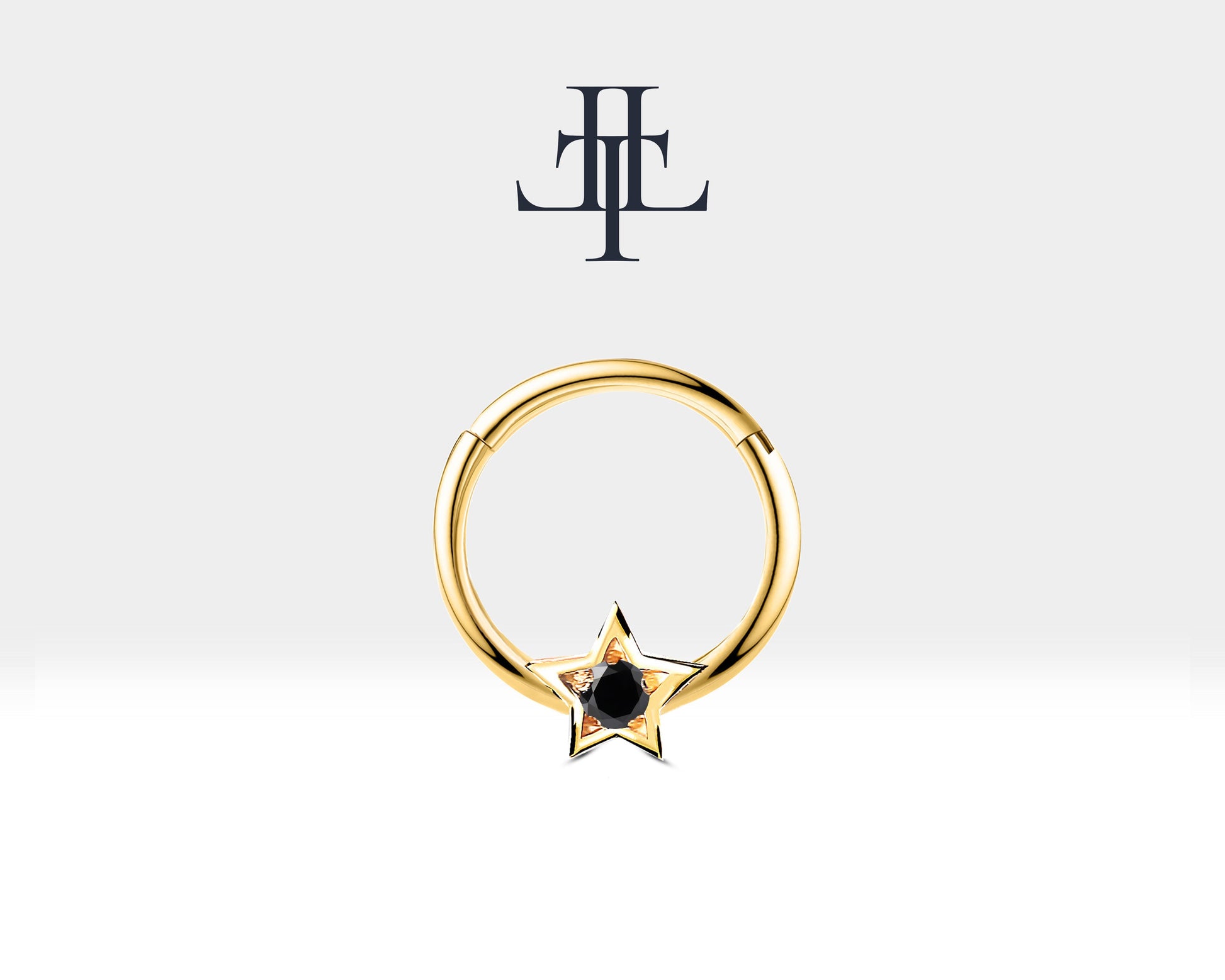 Yıldız Siyah Pırlanta Halka Piercing, 10 MM , 1.2 MM, 14K Sarı-Beyaz-Kırmızı Altın | LC00019B