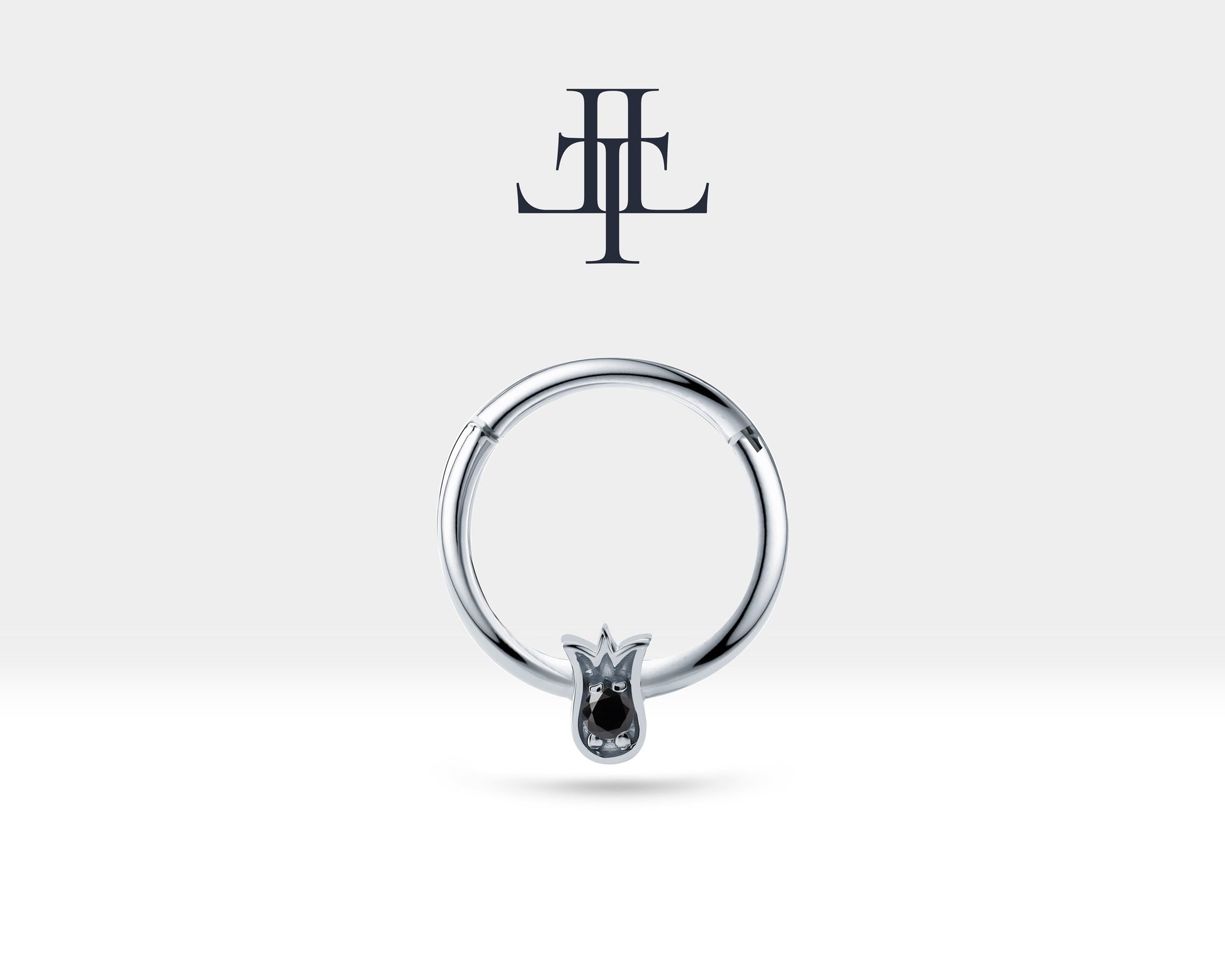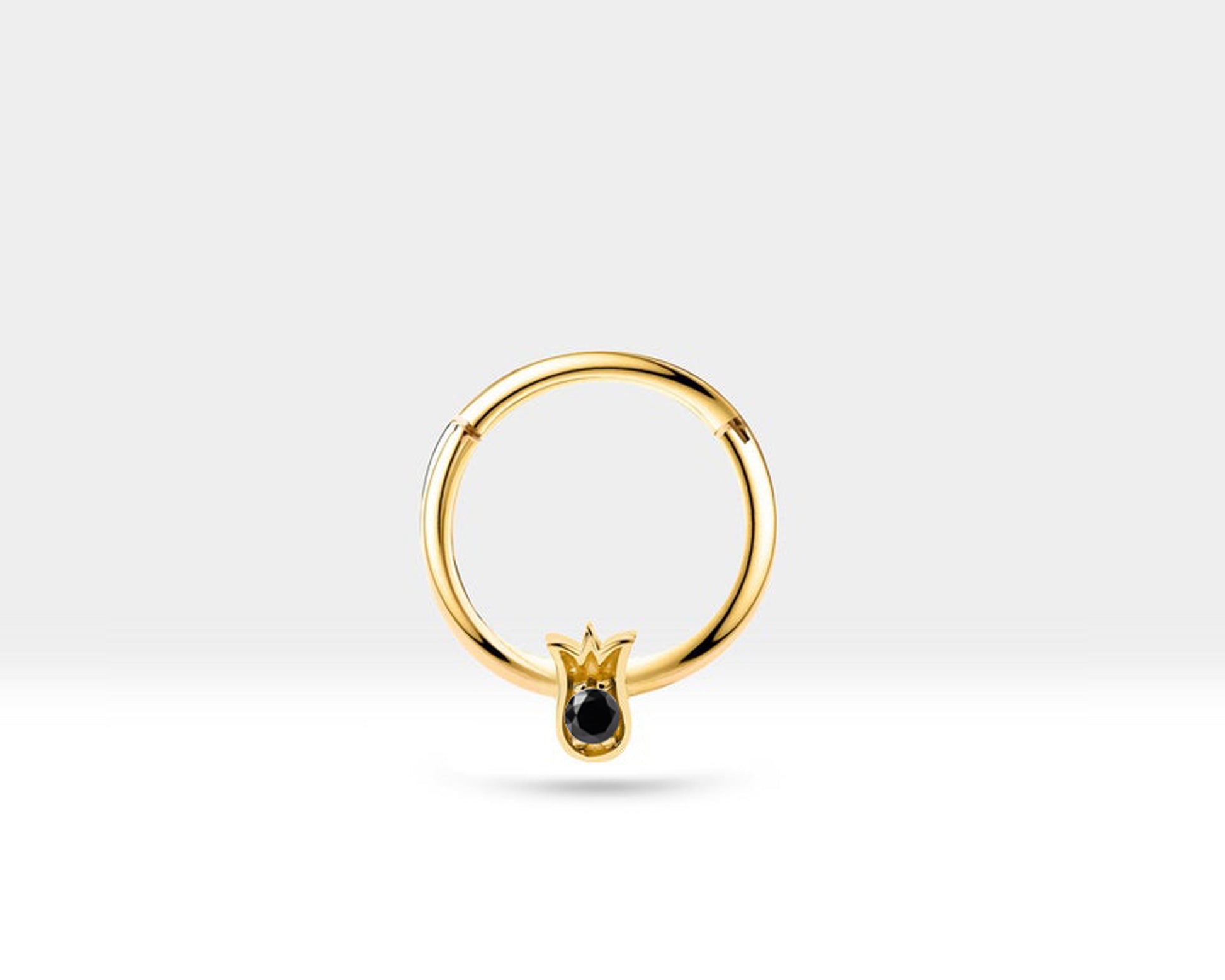 Lale Siyah Pırlantalı Halka Piercing, 12 MM , 1.2 MM, 14K Sarı-Beyaz-Kırmızı Altın | LC00038B