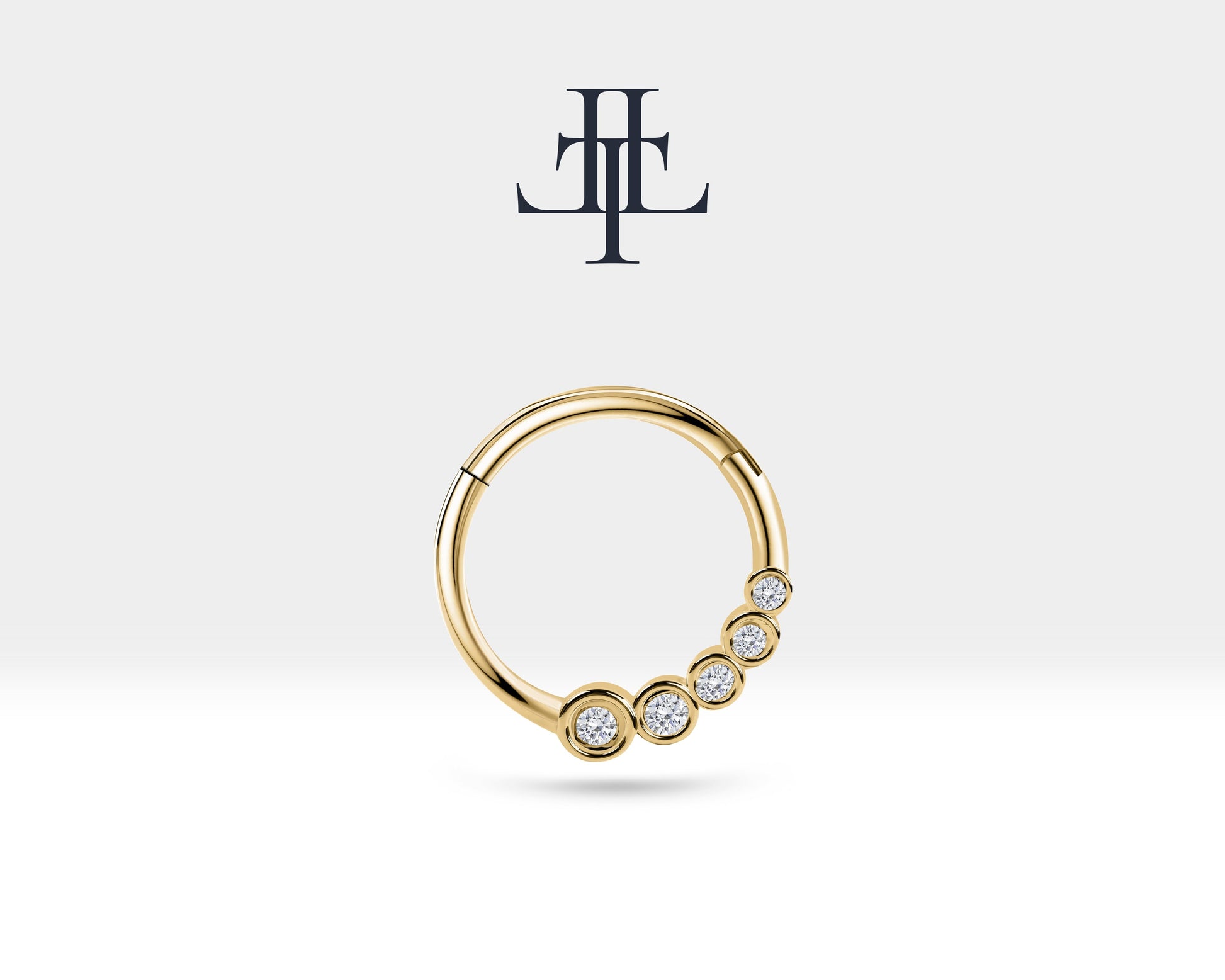 Süzme Pırlantalı Halka Piercing, 12 MM , 1.2 MM, 14K Sarı-Beyaz-Kırmızı Altın | LC00018D
