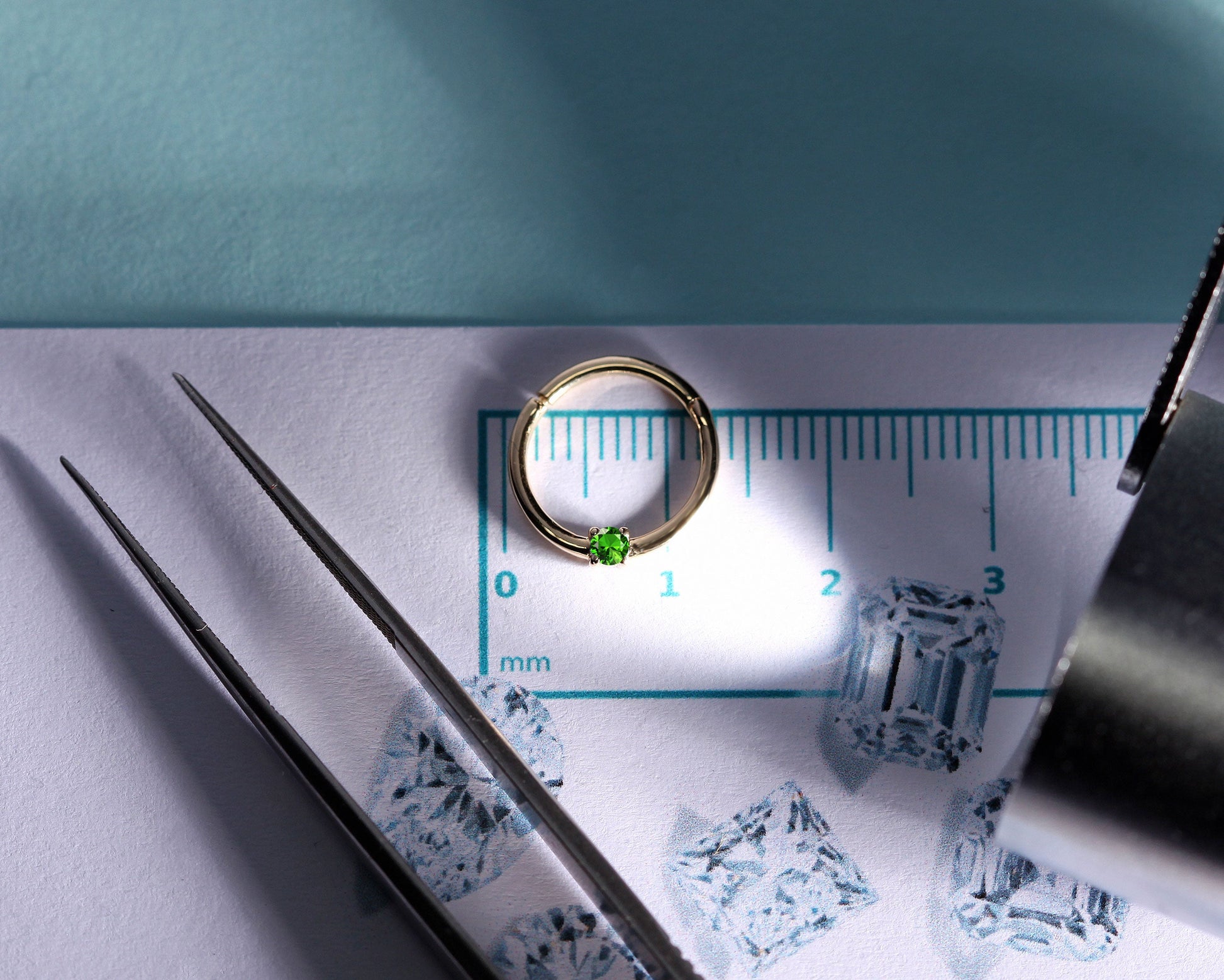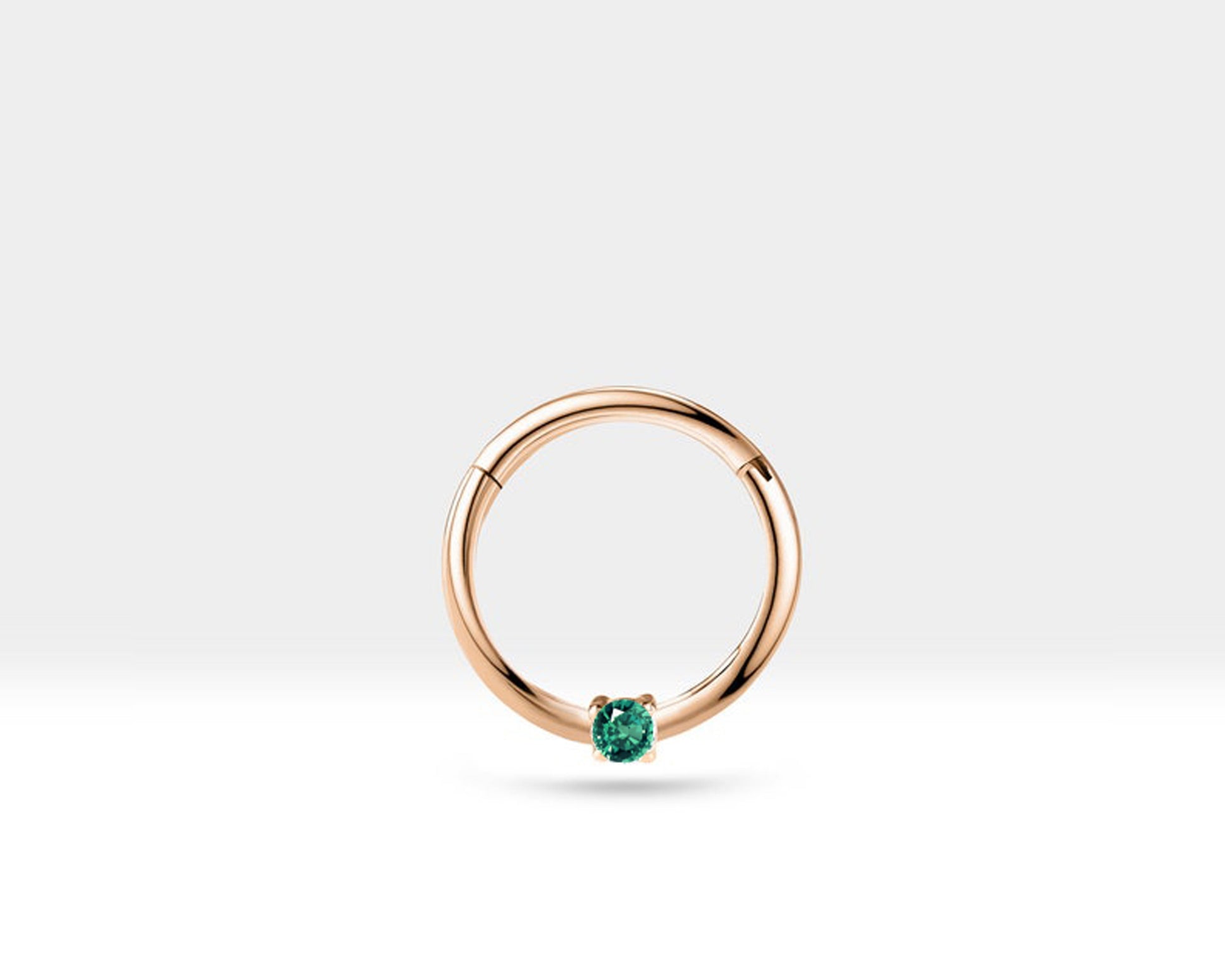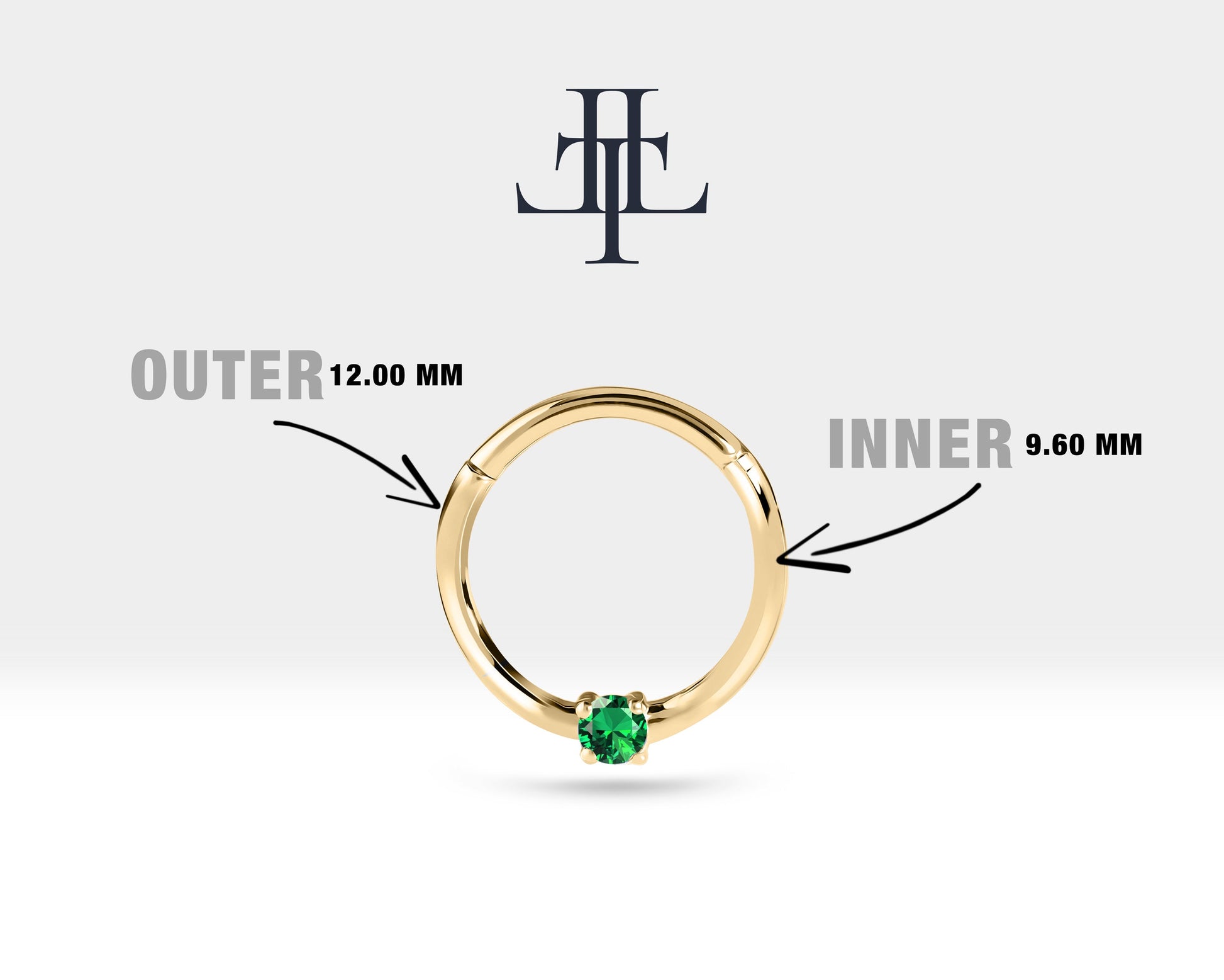 Yeşil Garnetlı Halka Piercing, 10-12 MM , 1.2 MM, 14K Sarı-Beyaz-Kırmızı Altın | LC00032G