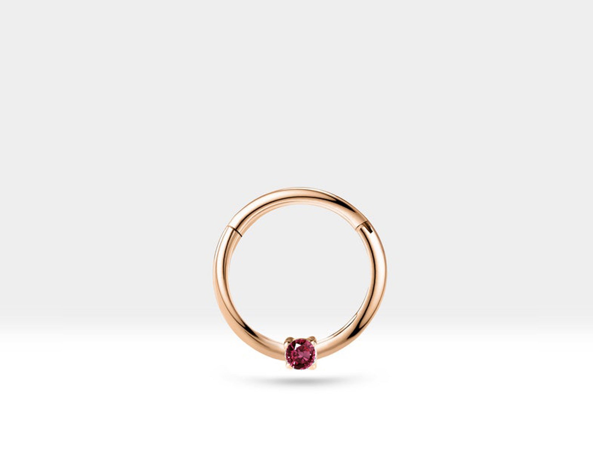 Yakut Halka Piercing, 10-12 MM , 1.2 MM, 14K Sarı-Beyaz-Kırmızı Altın | LC00032R