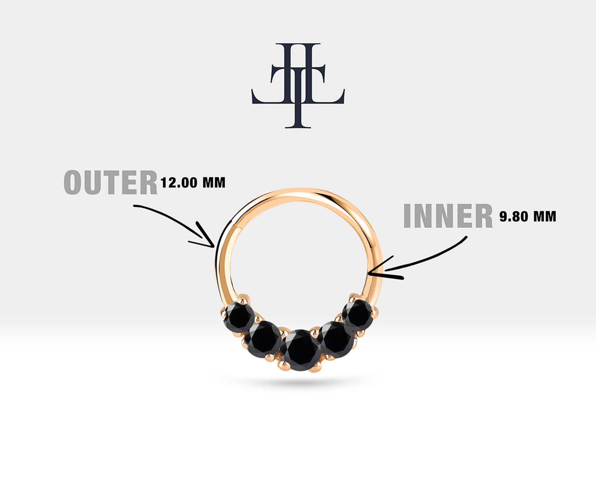 Beş Taşlı Siyah Pırlantalı Halka Piercing, 12 MM , 1.2 MM, 14K Sarı-Beyaz-Kırmızı Altın | LC00020B