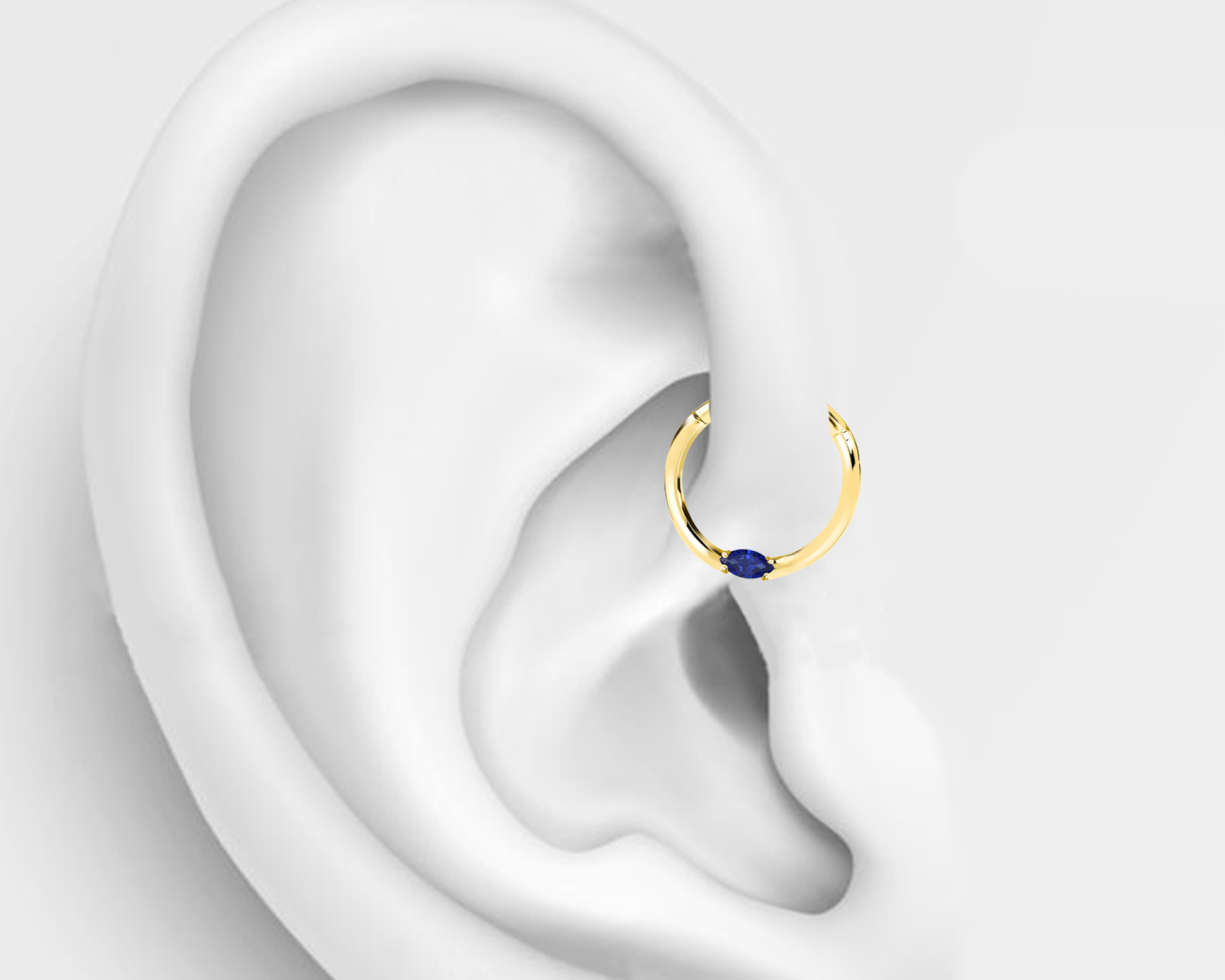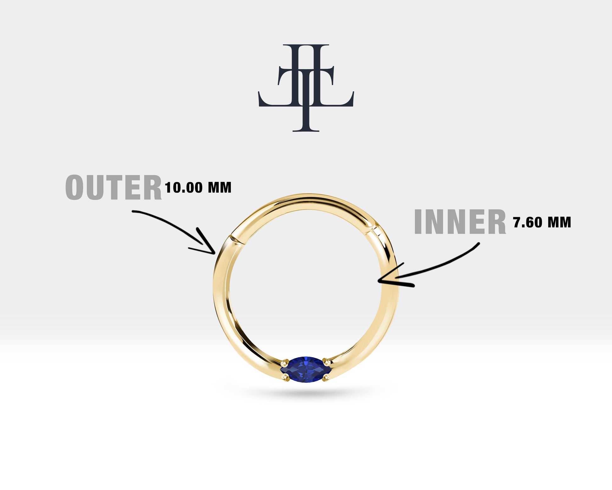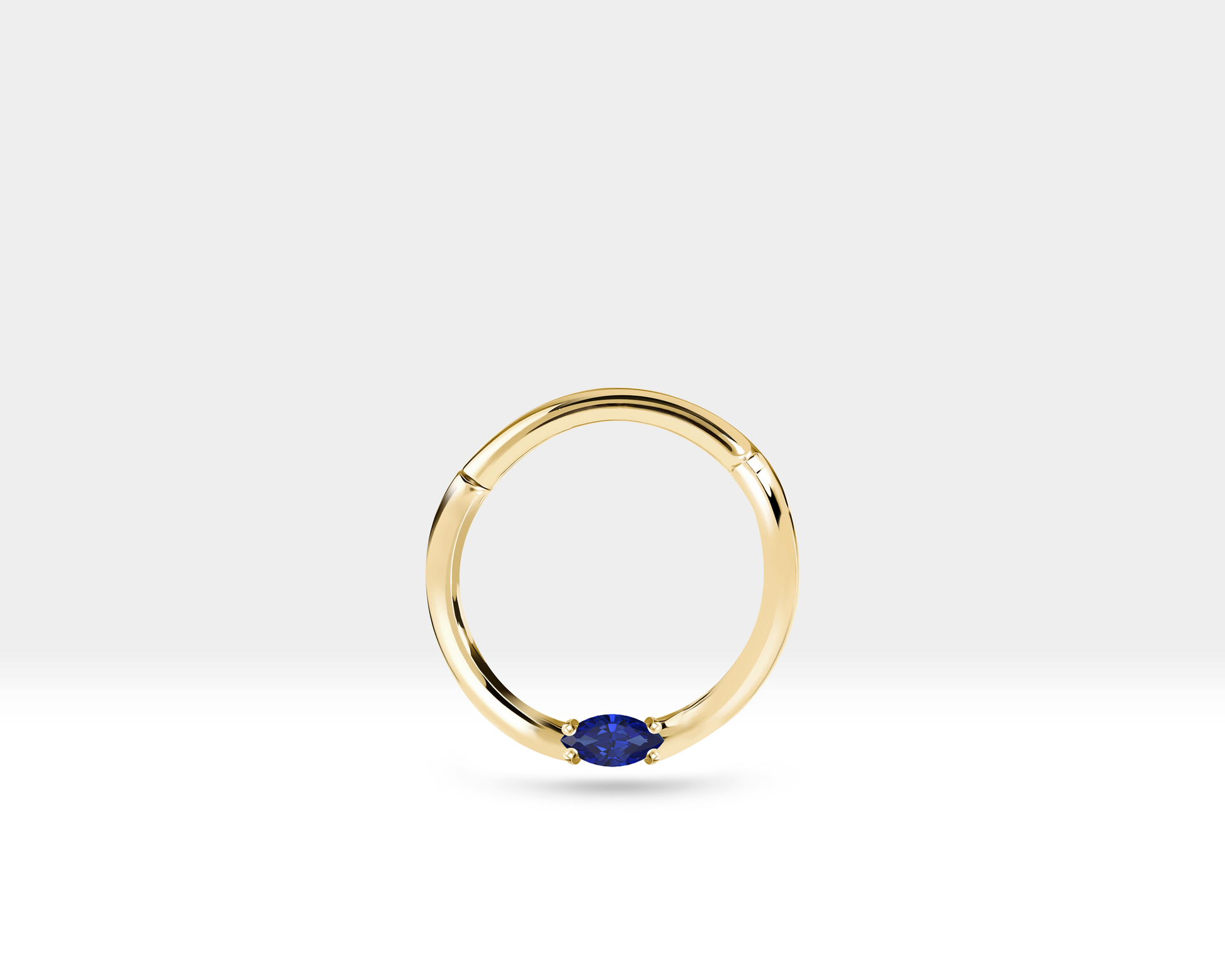 Markiz Safirli Halka Piercing, 10-12 MM , 1.2 MM, 14K Sarı-Beyaz-Kırmızı Altın | LC00028S