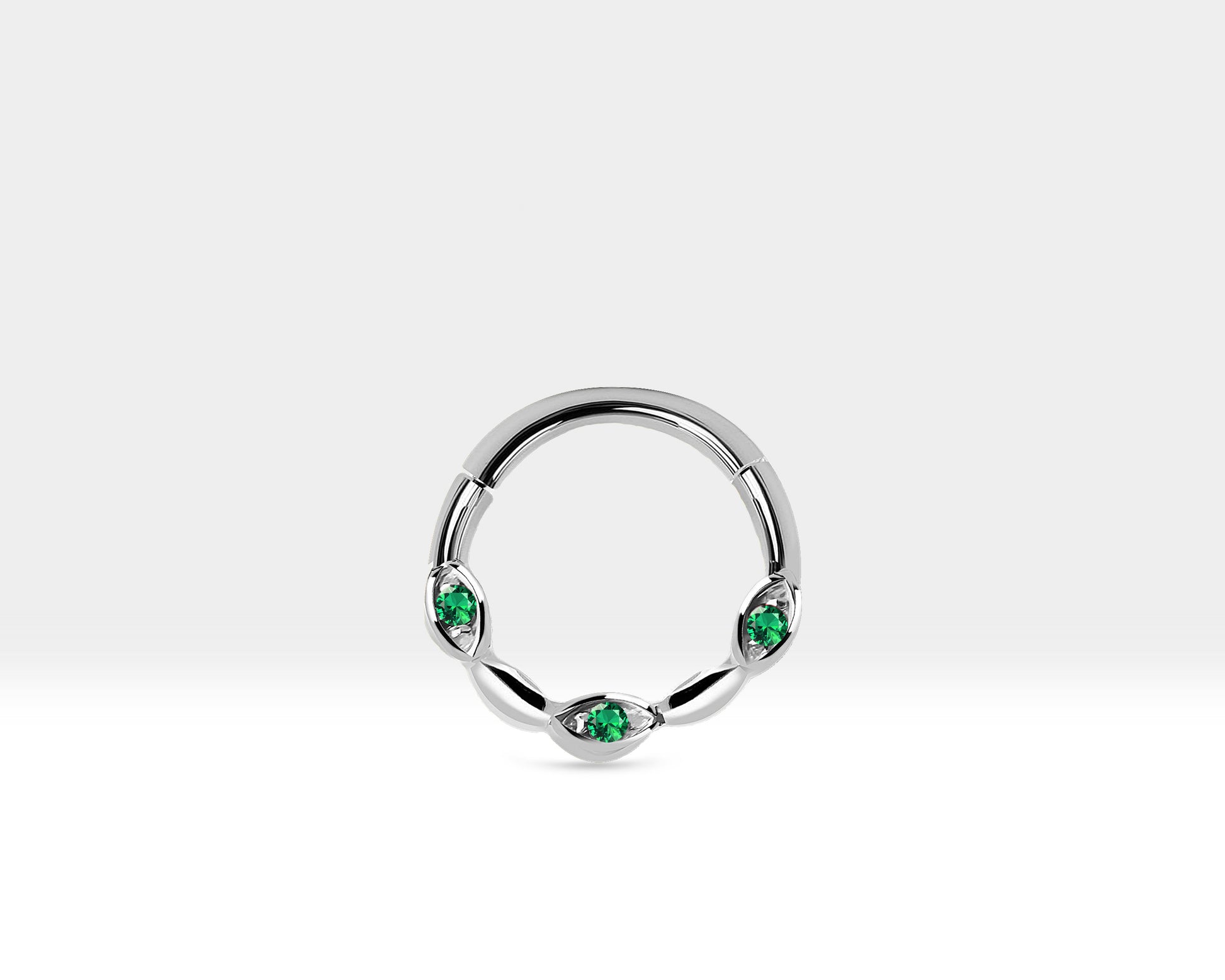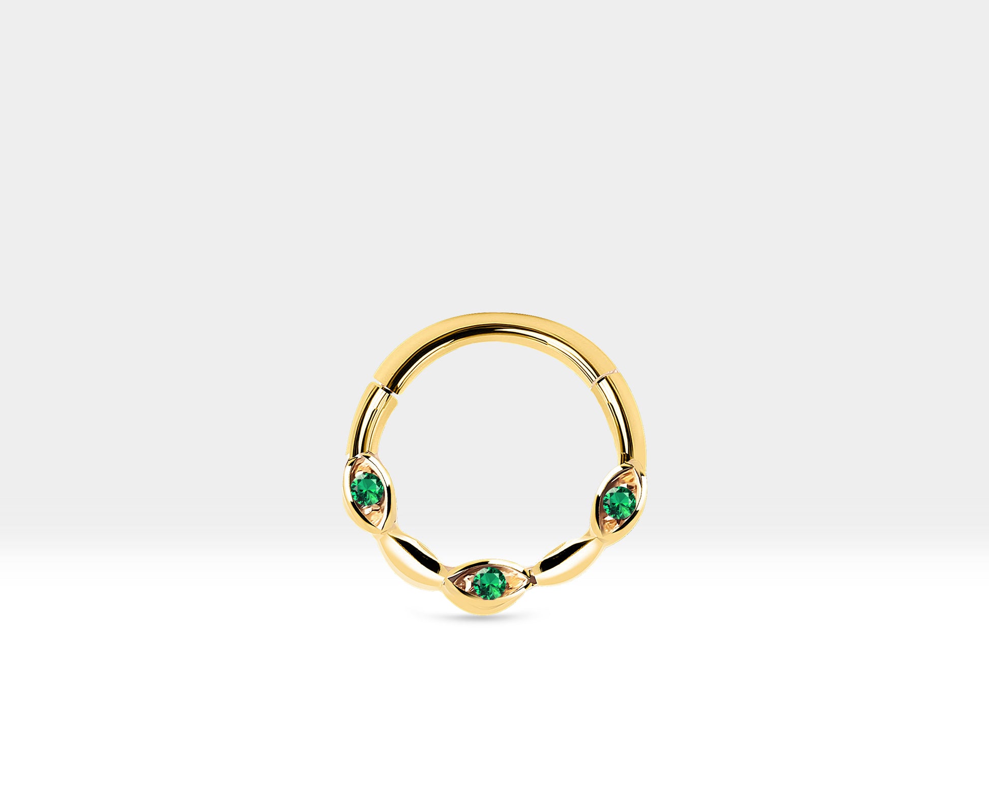 Üç Badem Yeşil Garnetlı Halka Piercing, 10 MM , 1.2 MM, 14K Sarı-Beyaz-Kırmızı Altın | LC00040G