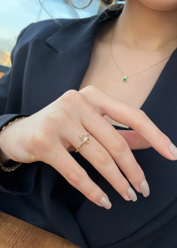 Fatıma'nın Eli Pırlanta Yüzük, 14K Sarı-Beyaz-Kırmızı Altın | LR00017D